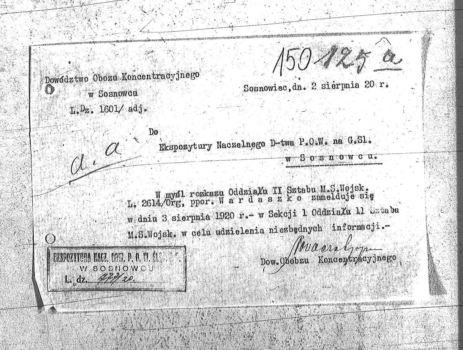 Tytuł Do Ekspozytury Naczelnego Dowództwa P.O.W. na Górny Śląsk w Sosnowcu
