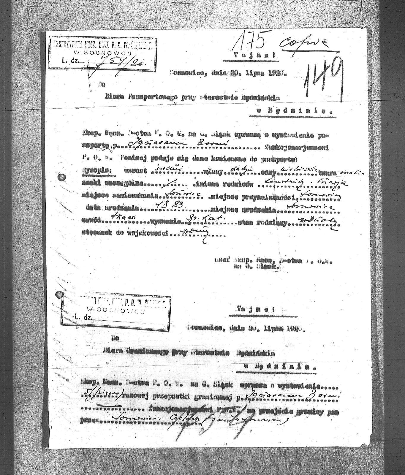 | Tytuł | Do Biura Paszportowego i Granicznego przy Starostwie Będzińskim |