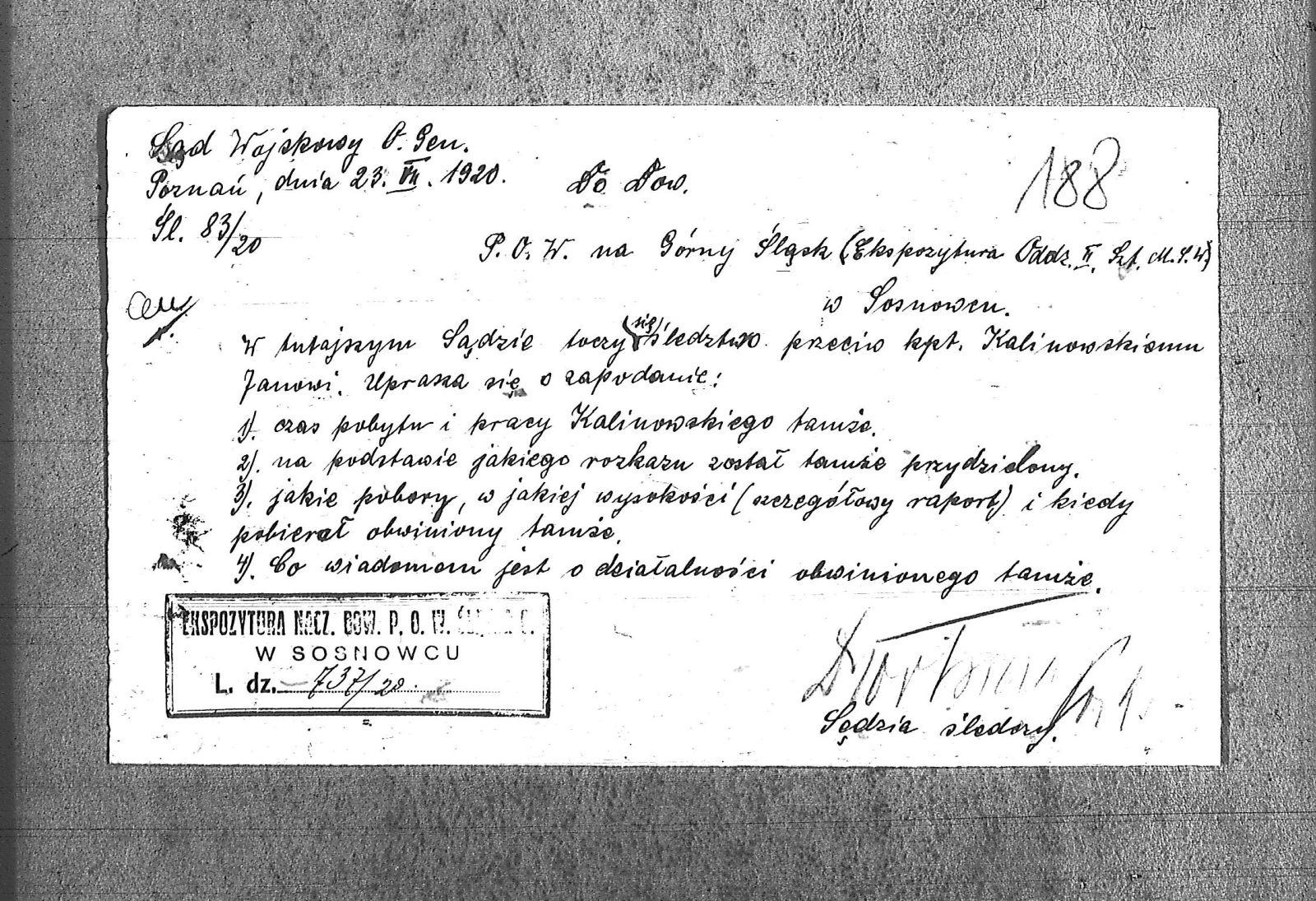 | Tytuł | Do Dowództwa P.O.W. na Górny Śląsk - Ekspozytura Oddziału II Sztabu Ministerstwa Spraw Wojskowych w Sosnowcu |