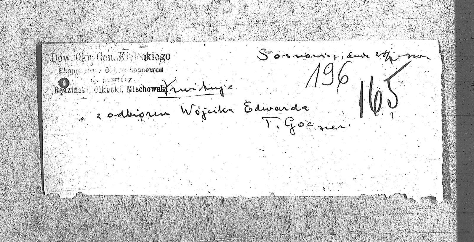 | Instytucje | Dowództwo Okręgu Gen. Kieleckiego Ekspozytura O.I. w Sosnowcu na powiaty Będziński; Miechowski; Olkuski |