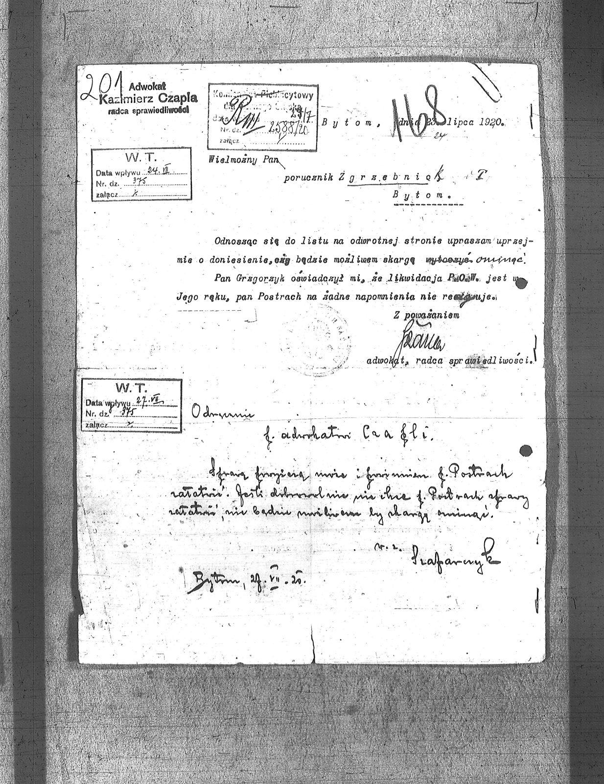 | Instytucje | Polski Komisariat Plebiscytowy na Górnym Śląsku. Wydział Prawny w Bytomiu |