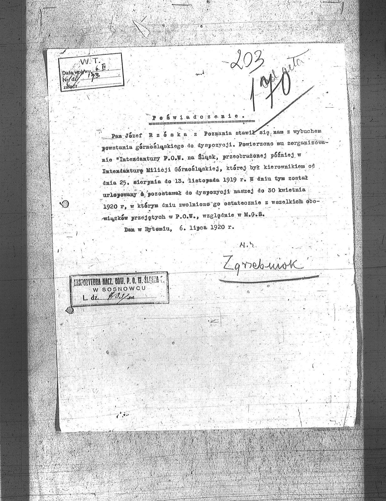 Tytuł teczki[Naczelne Dowództwo POW na Górnym Śląsku - protokoły, korespondencja, legitymacje, przepustki i upoważnienia]