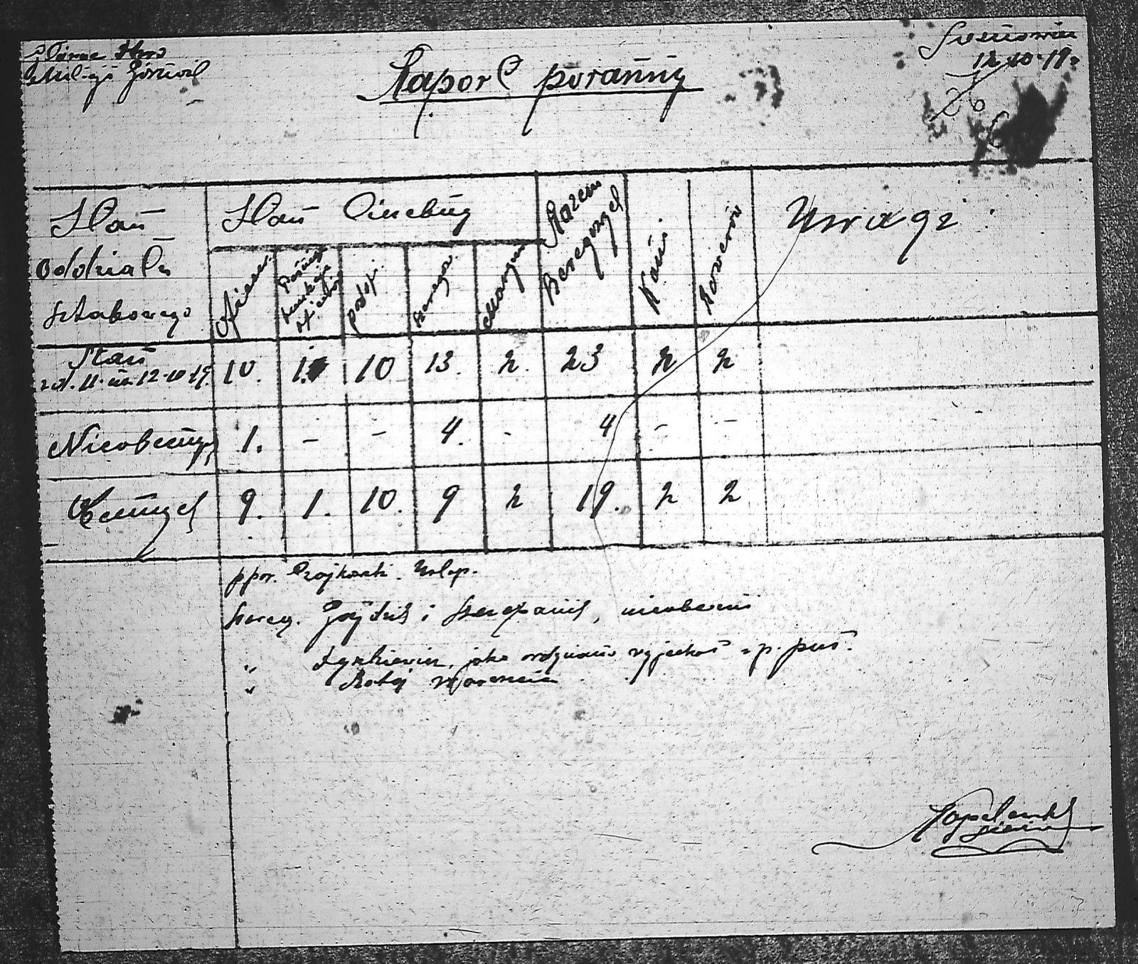 | Tytuł | Raport dotyczący stanu oddziału sztabowego |