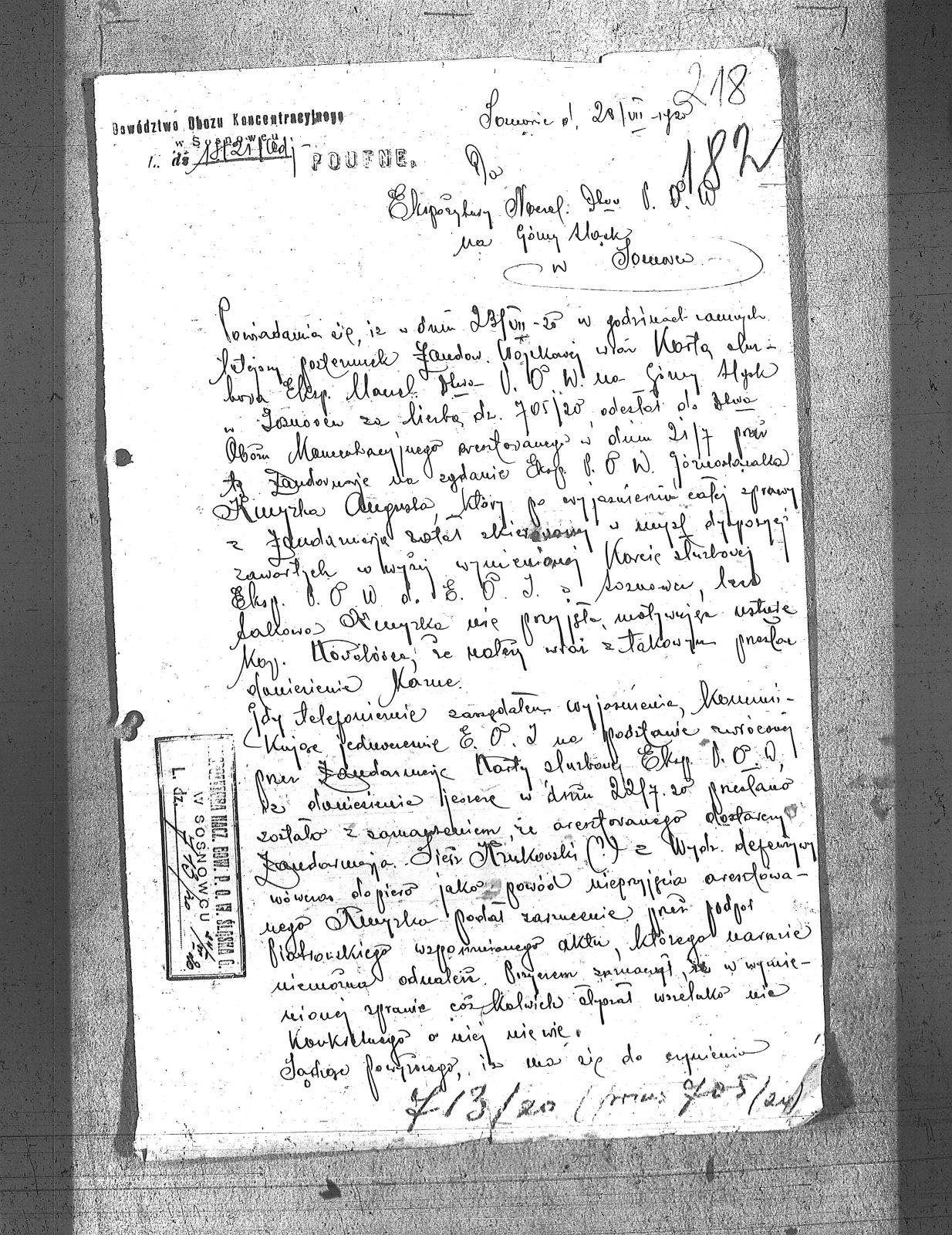 Tytuł Do Ekspozytury Naczelnego Dowództwa P.O.W. na Górny Śląsk w Sosnowcu