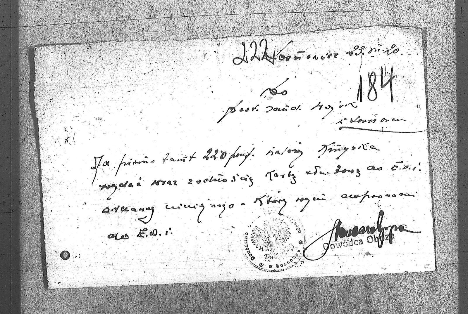Tytuł Do Posterunku Żandarmerii Wojskowej w Sosnowcu
