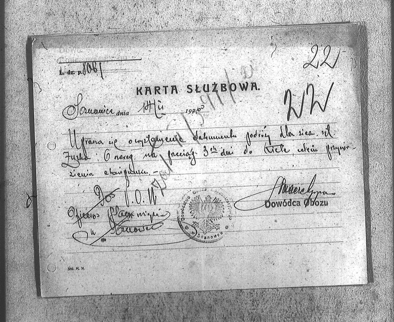 Tytuł teczki[Naczelne Dowództwo POW na Górnym Śląsku - karty służbowe, dokumenty podróży, korespondencja]