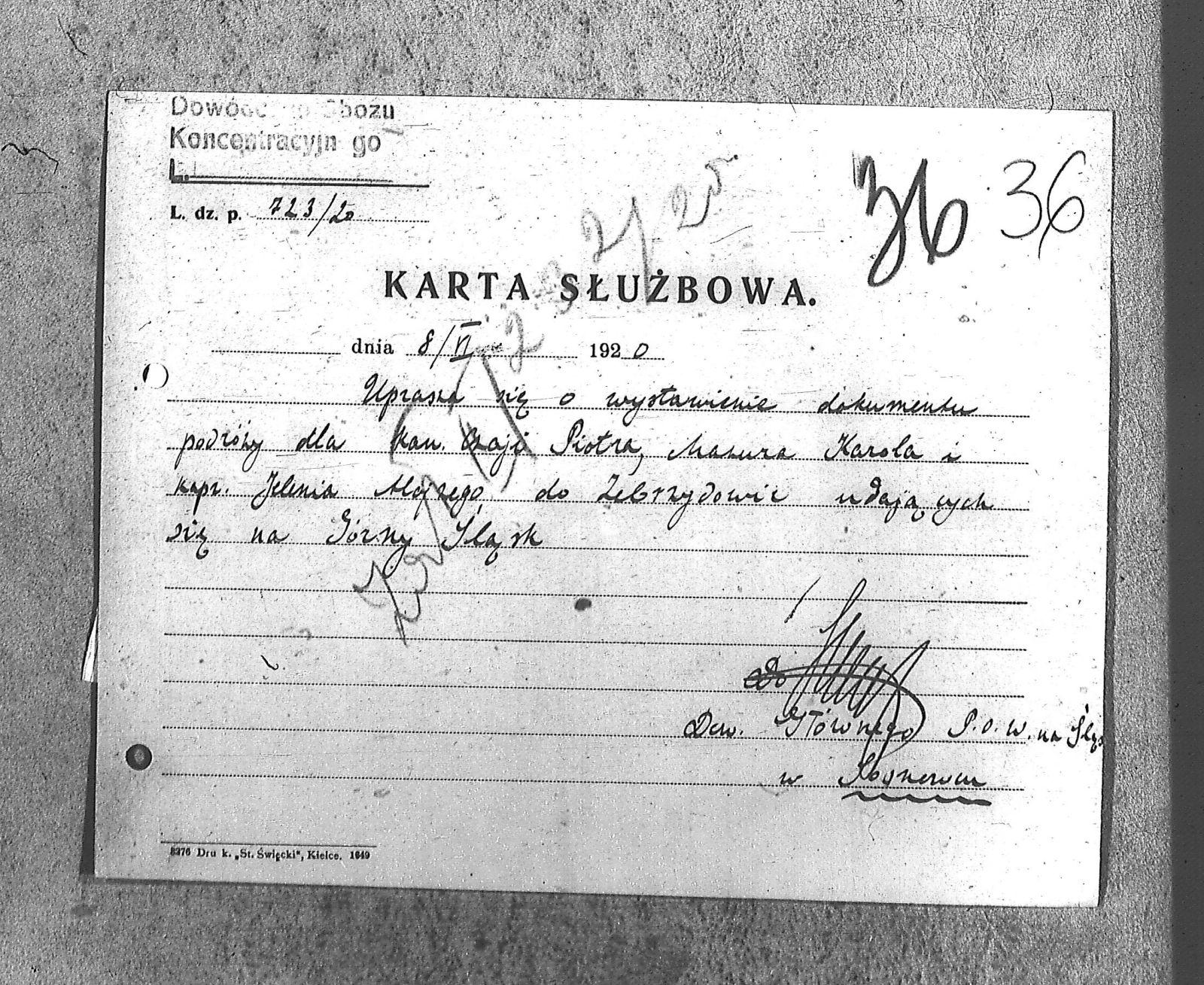 Tytuł teczki[Naczelne Dowództwo POW na Górnym Śląsku - karty służbowe, dokumenty podróży, korespondencja]