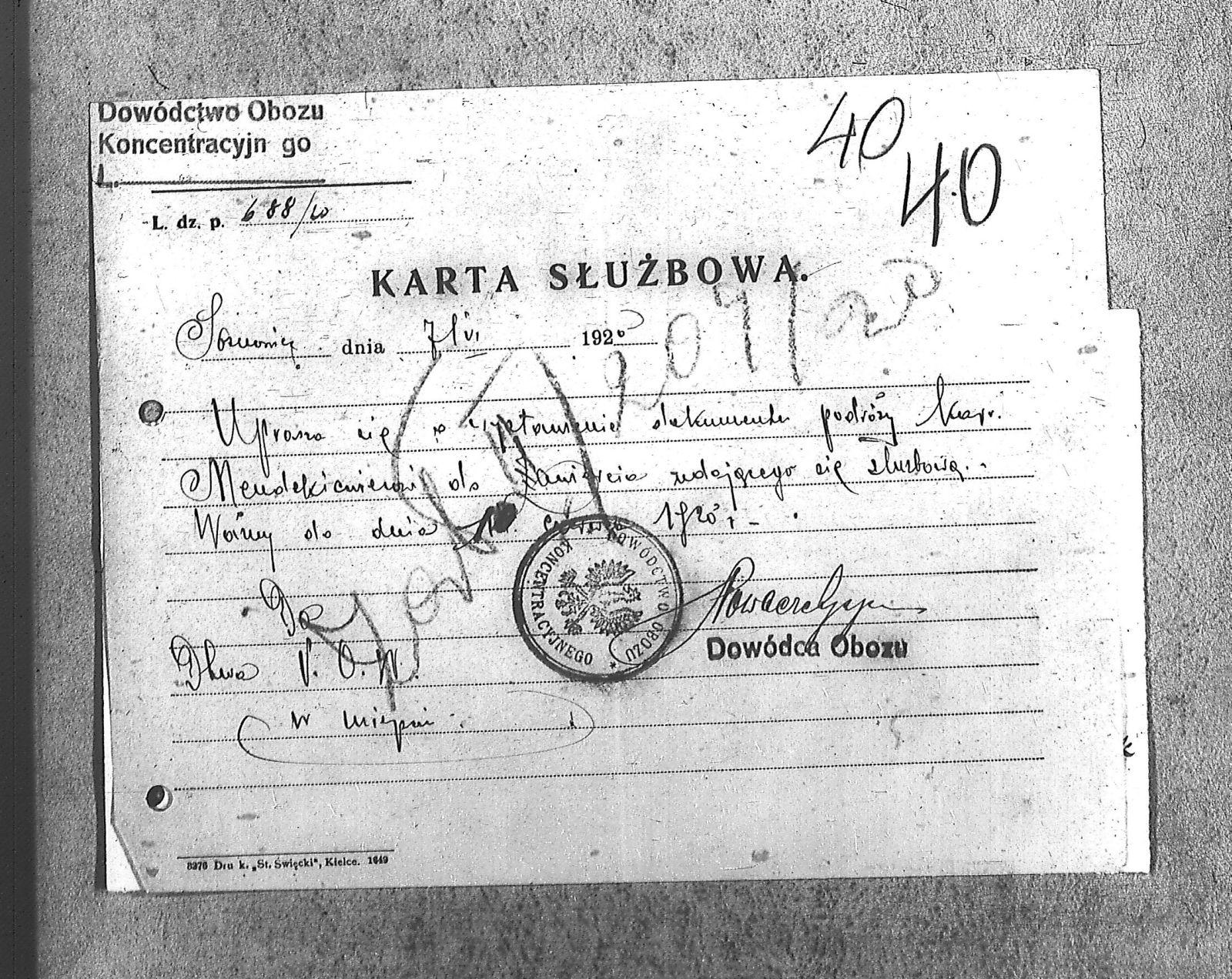 Tytuł Karta Służbowa