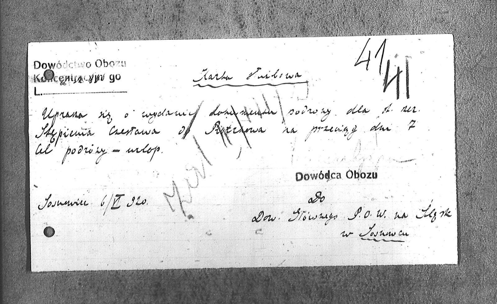 Tytuł teczki[Naczelne Dowództwo POW na Górnym Śląsku - karty służbowe, dokumenty podróży, korespondencja]