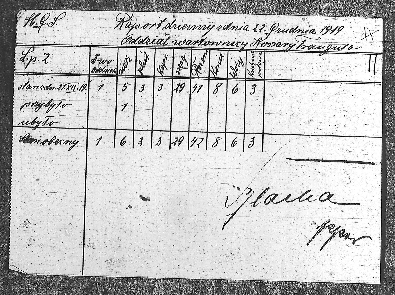 Tytuł Raport dzienny oddziału wartowniczego - Koszary Traugutta