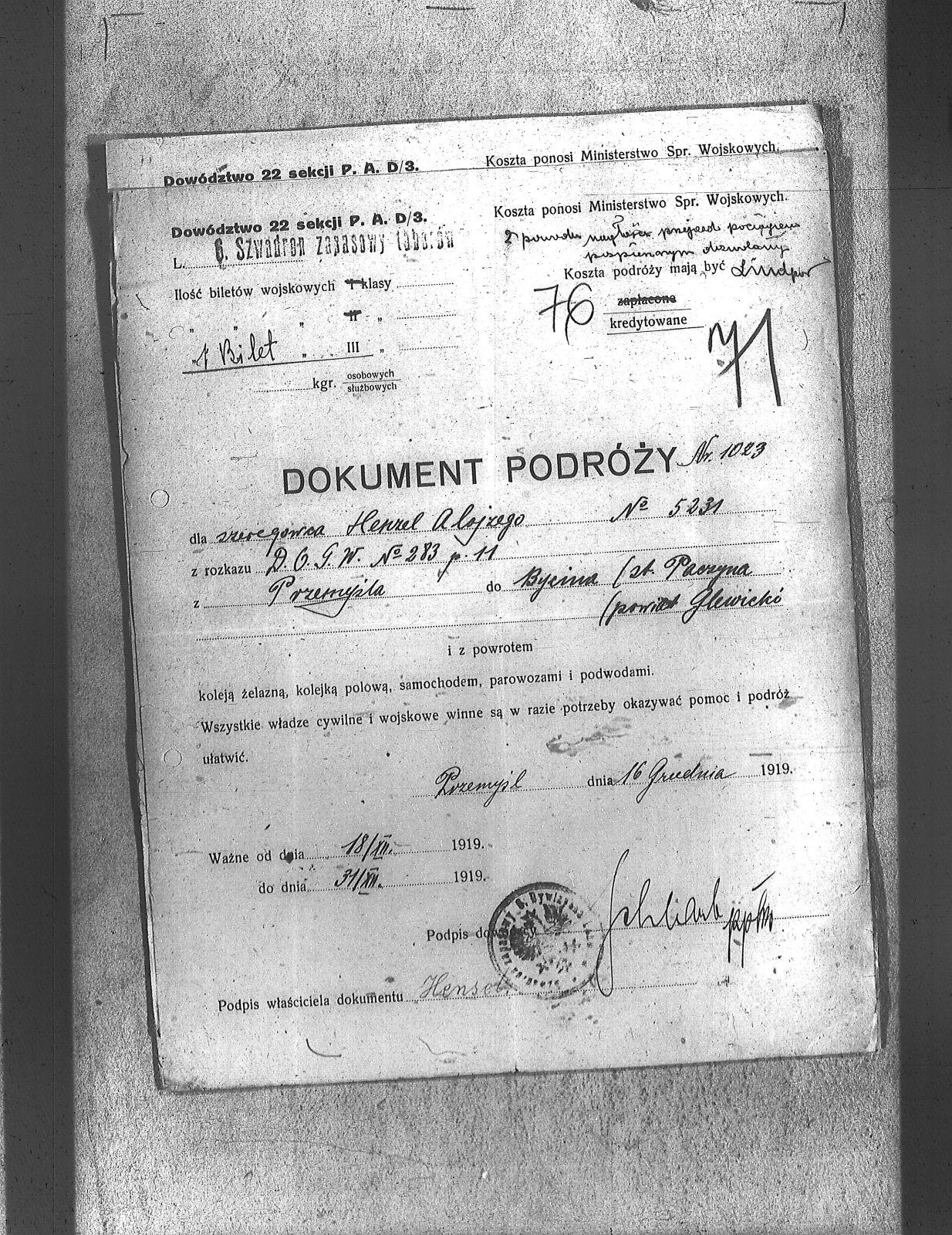 Tytuł teczki[Naczelne Dowództwo POW na Górnym Śląsku - karty służbowe, dokumenty podróży, korespondencja]