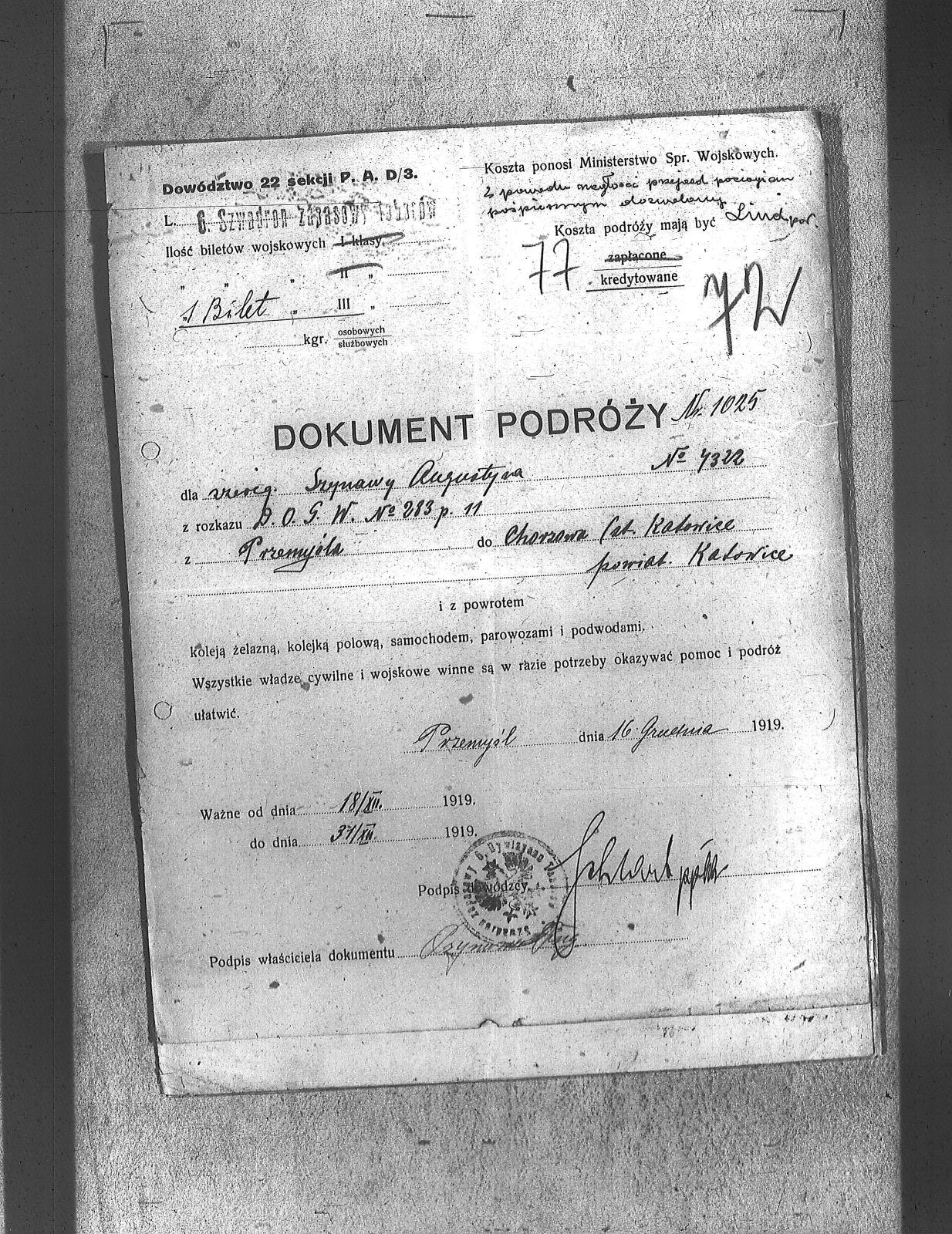 Tytuł teczki[Naczelne Dowództwo POW na Górnym Śląsku - karty służbowe, dokumenty podróży, korespondencja]