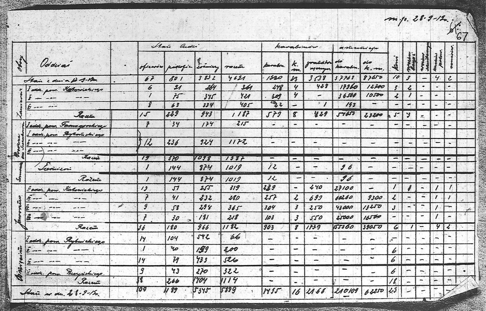 | Tytuł | Zestawienie dotyczące obozów Zawiercia, Szczakowa, Sosnowca,Jaworzna, Oświęcimia, nazwy oddziałów, ilość ludzi, karabinów, amunicji |