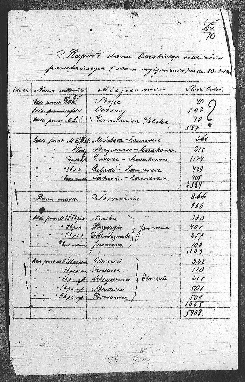 Tytuł Raport dotyczący stanu liczebnego oddziałów powstańczych - stan wyżywienia