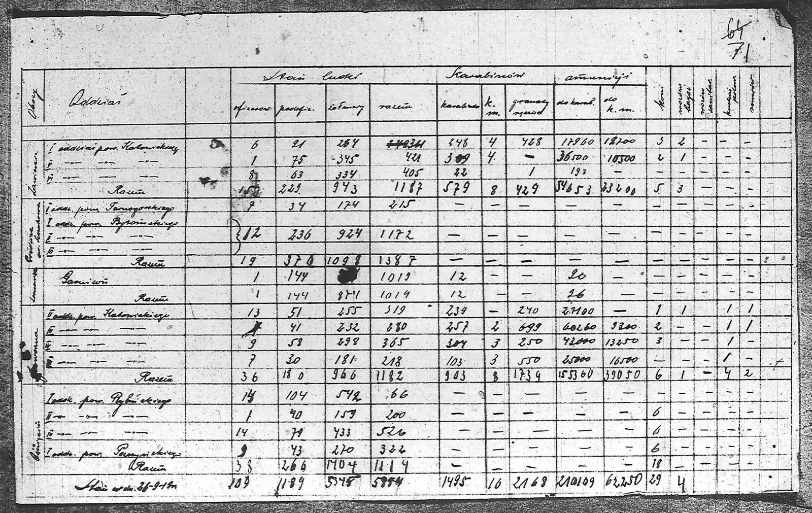 | Tytuł | Zestawienie dotyczące obozów Zawiercia , Szczakowa, Sosnowca, Jaworzna, Oświęcimia, nazwy oddziału, ilość ludzi, karabinów, amunicji |