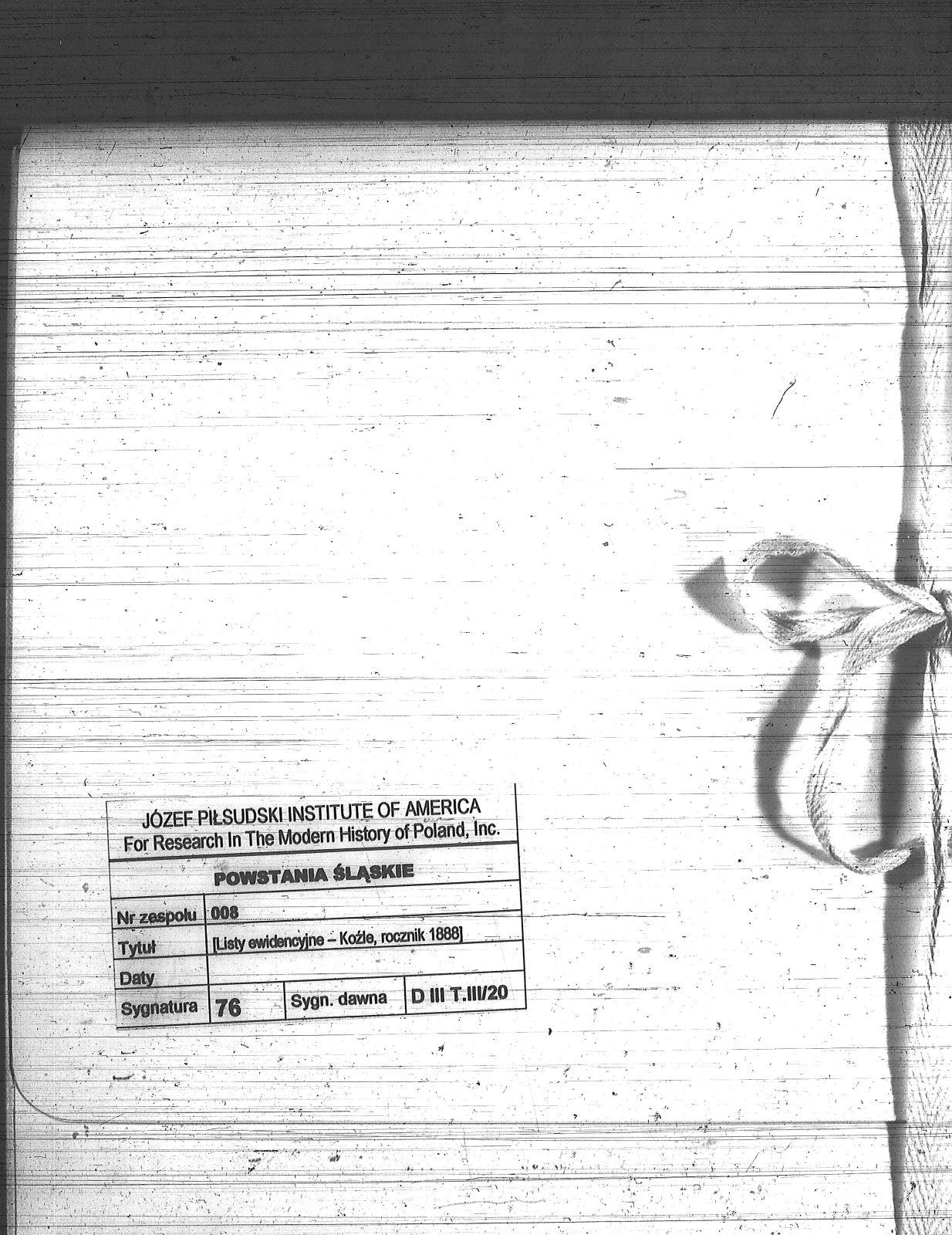 Tytuł Listy ewidencyjne - Koźle, rocznik 1888