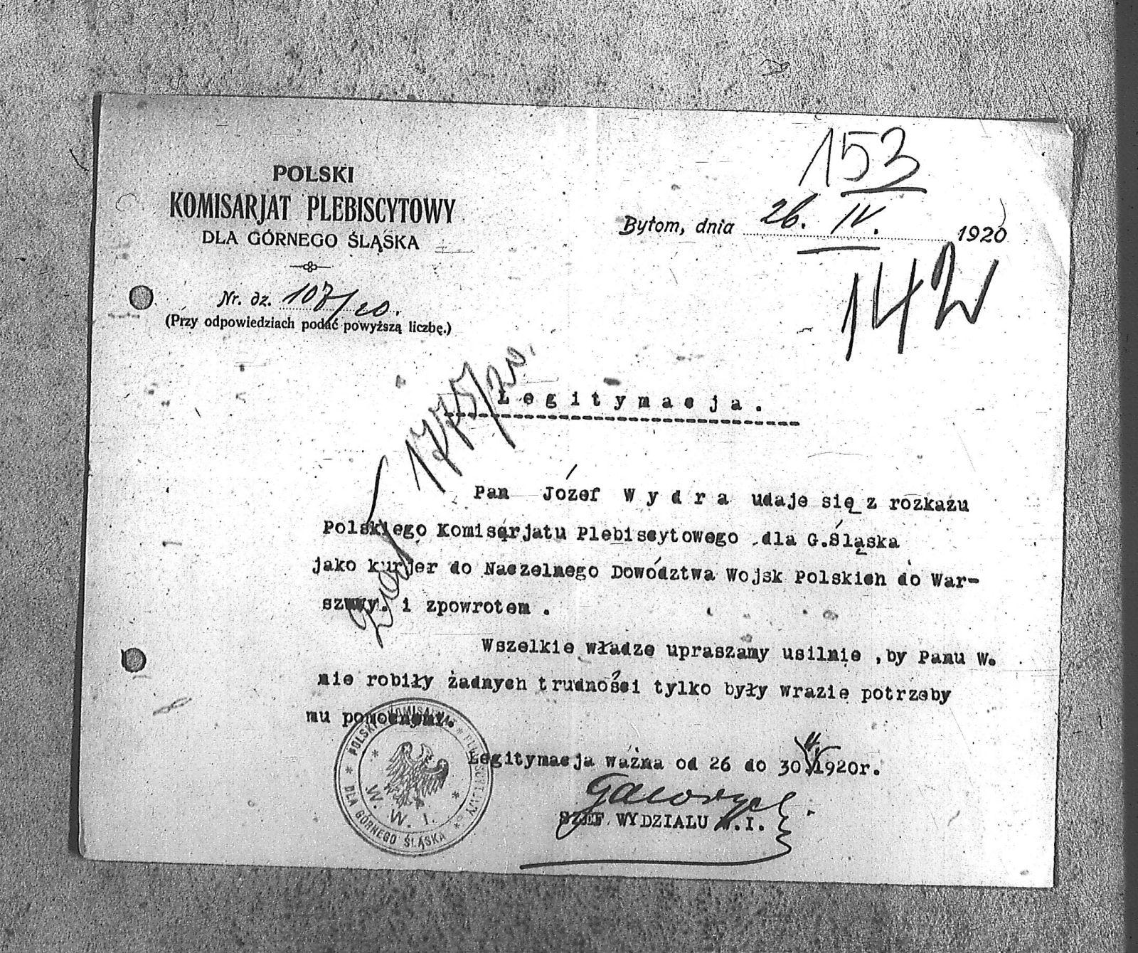Tytuł teczki[Naczelne Dowództwo POW na Górnym Śląsku - karty służbowe, dokumenty podróży, korespondencja]