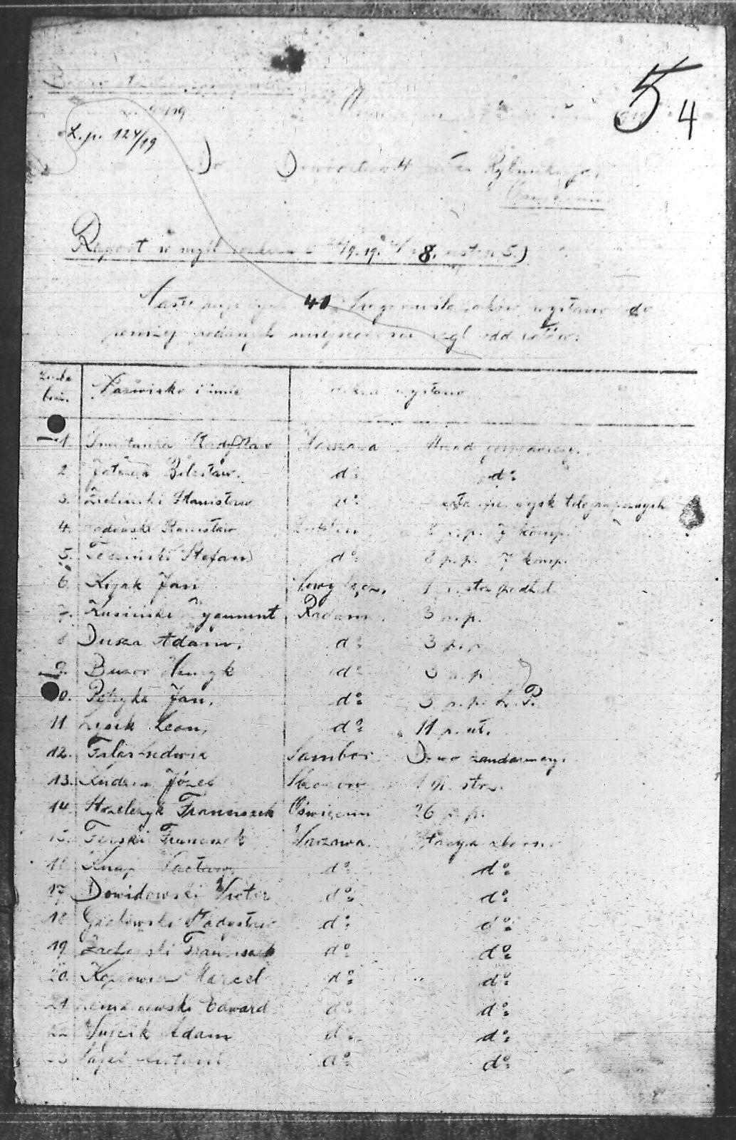 [nieczytelne], Michał; Buzor, Henryk; Dawidowski, Wiktor; Dusza, Adam; Dziechiarski, Antoni; Ferski, Franciszek; Filas, Ludwik; Grabowski, Władysław; Gut, Józef; Jatczak, Bolesław; Kajzowicz, Marcel; Kamiński, Feliks; Karaś, Stanisław; Kijak, Jan; Knap, Wacław; Kołodziejczyk, Jan; Kudzia, Józef; Kusiński, Zygmunt; Lemanowski, Edward; Ludwicki, Tadeusz; Łęczyński, Wincenty; Łysik, Leon; Midejczyk, Alojzy; Mleczkowski, Antoni; Modrzelewski, Henryk; Mulik, Józef; Palach, Stanisław; Petryka, Jan; Sadowski, Stanisław; Sajaf, Antoni; Skowroński, Wacław; Strzelczyk, Franciszek; Szymański, Julian; Śliwa, Franciszek; Śmietanka, Władysław; Teczyński, Stefan; Tyda, Jan; Wawrzynek, Franciszek; Wójcik, Adam; Zieliński, Stanisław; Żachawski, Franciszek; |