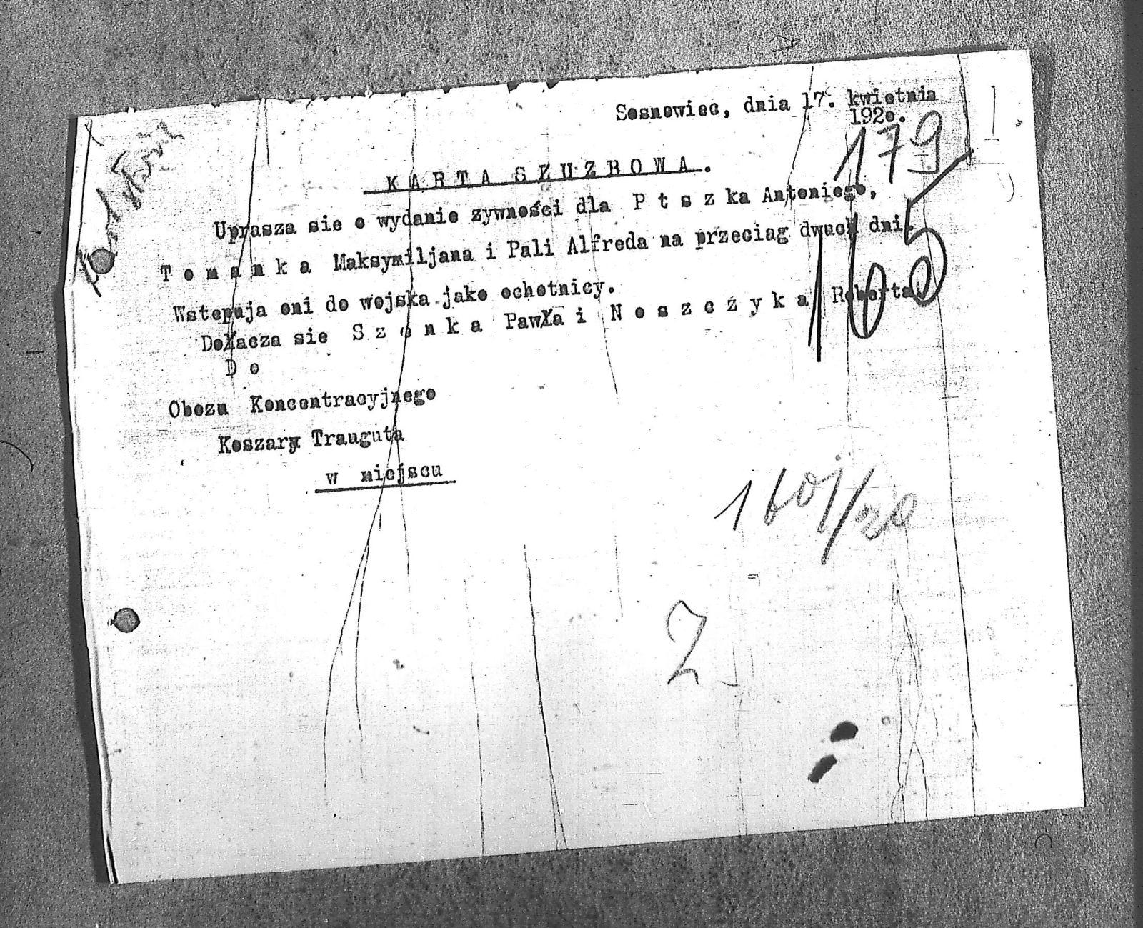 Tytuł teczki[Naczelne Dowództwo POW na Górnym Śląsku - karty służbowe, dokumenty podróży, korespondencja]