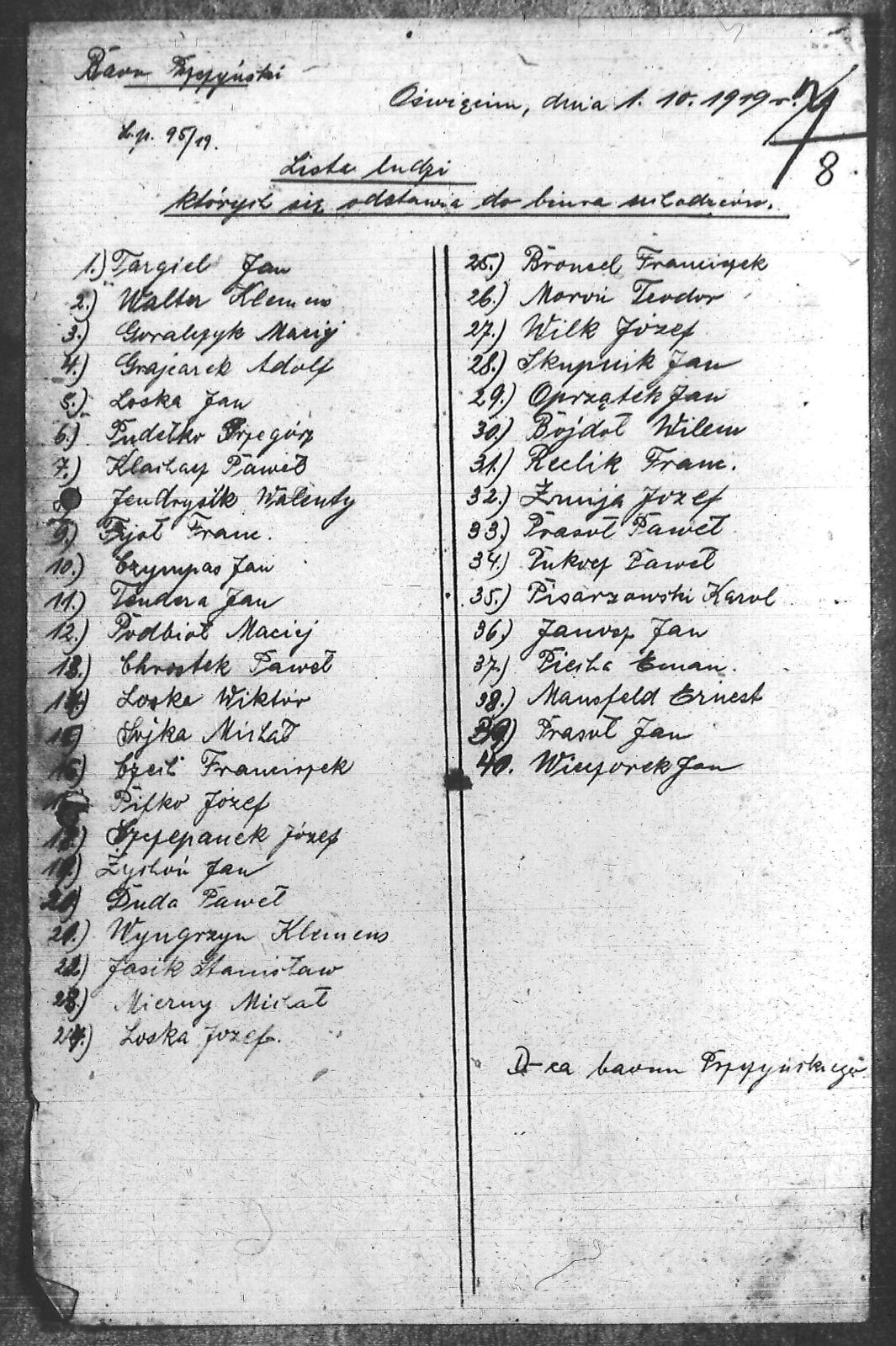 Bojdoł, Wilem; Broncel, Franciszek; Chrostek, Paweł; Czeil, Franciszek; Czympas, Jan; Duda, Paweł; Fijoł, Franciszek; Grajcarek, Adolf; Guralczyk, Maciej; Janosz, Jan; Jasik, Stanisław; Jendrysik, Walenty; Klachacz, Paweł; Loska, Jan; Loska, Józef; Loska, Wiktor; Mansfeld, Ernest; Mierny, Michał; Moroń, Teodor; Oprzątek, Jan; Piecha, Emanuel; Pifko, Józef; Pisarzewski, Karol; Podbioł, Maciej; Prasoł, Jan; Prasoł, Paweł; Pudełko, Grzegorz; Pukocz, Paweł; Reclik, Franciszek; Skupnik, Jan; Sojka, Michał; Szczepanek, Józef; Targiel, Jan; Tendera, Jan; Walter, Klemens; Wieczorek, Jan; Wilk, Józef; Wyngrzyn, Klemens; Żmija, Józef; Żyrkoń, Jan; |
