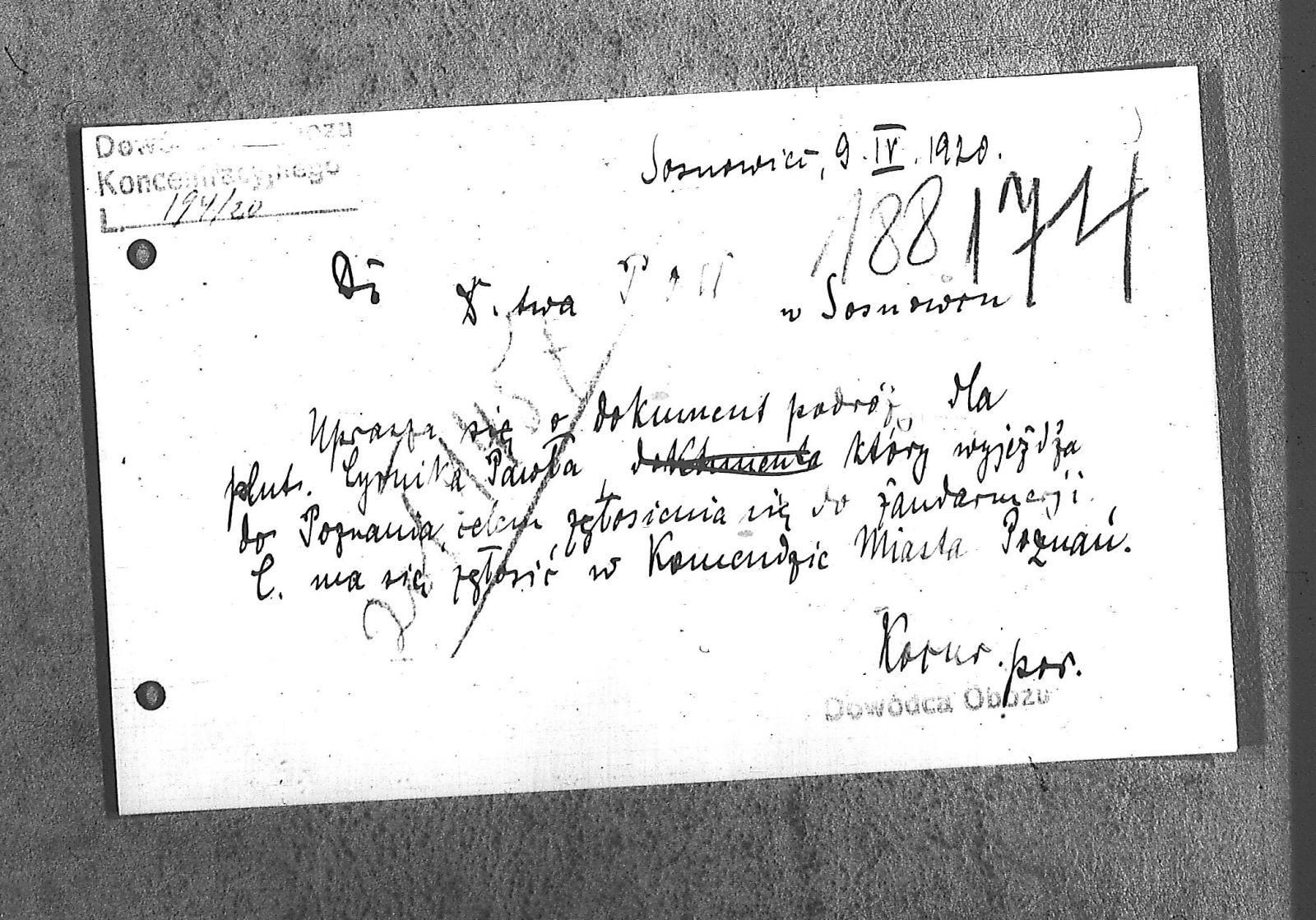 Tytuł teczki[Naczelne Dowództwo POW na Górnym Śląsku - karty służbowe, dokumenty podróży, korespondencja]