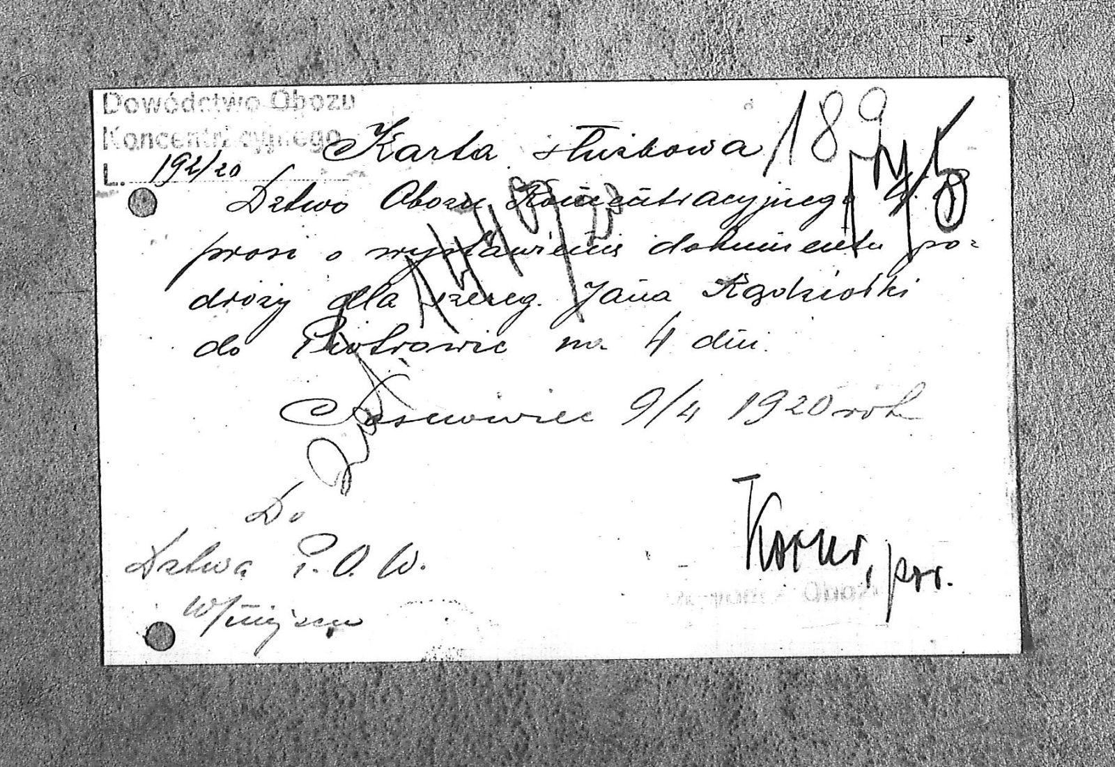Tytuł teczki[Naczelne Dowództwo POW na Górnym Śląsku - karty służbowe, dokumenty podróży, korespondencja]
