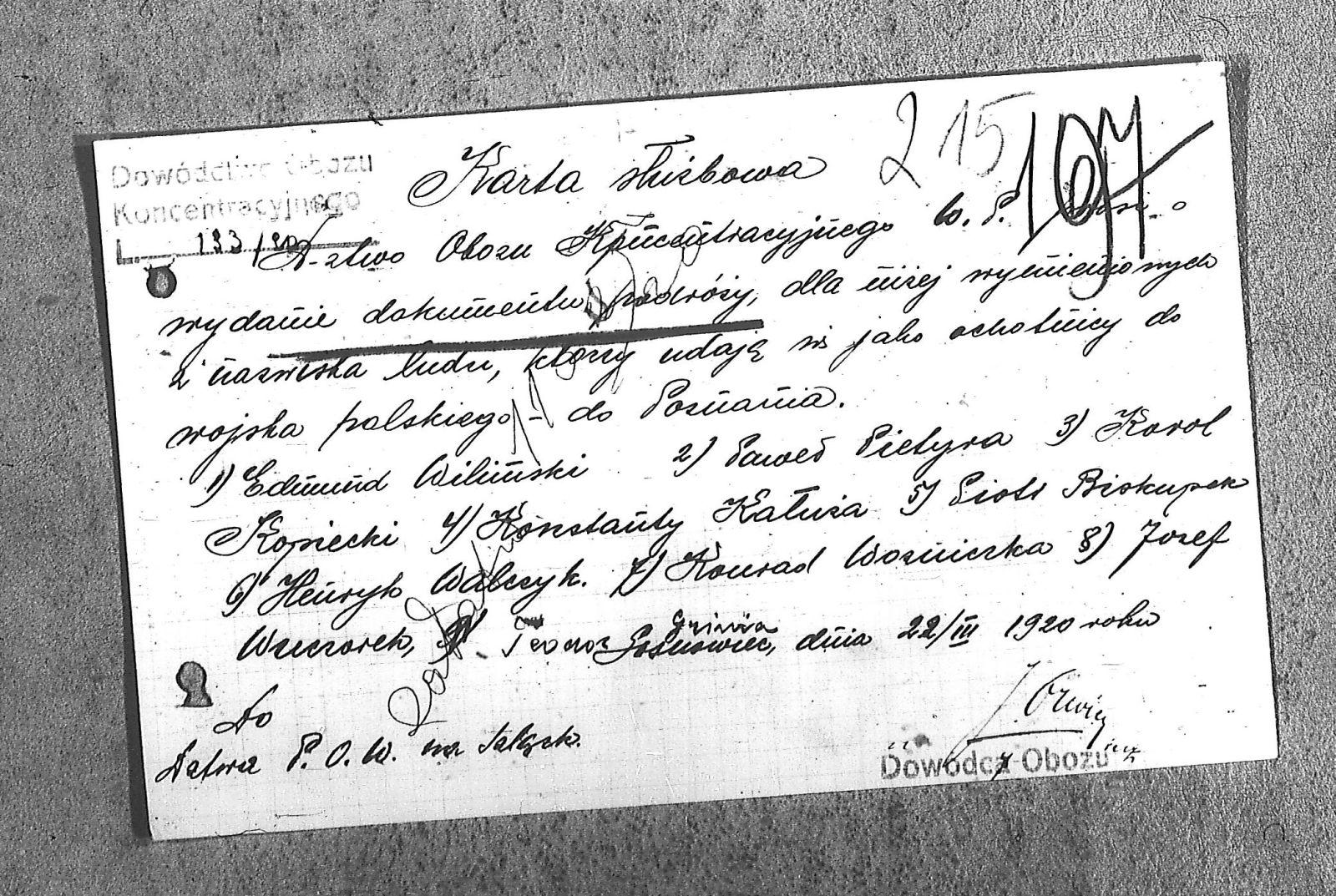 | Tytuł teczki | [Naczelne Dowództwo POW na Górnym Śląsku - karty służbowe, dokumenty podróży, korespondencja] |