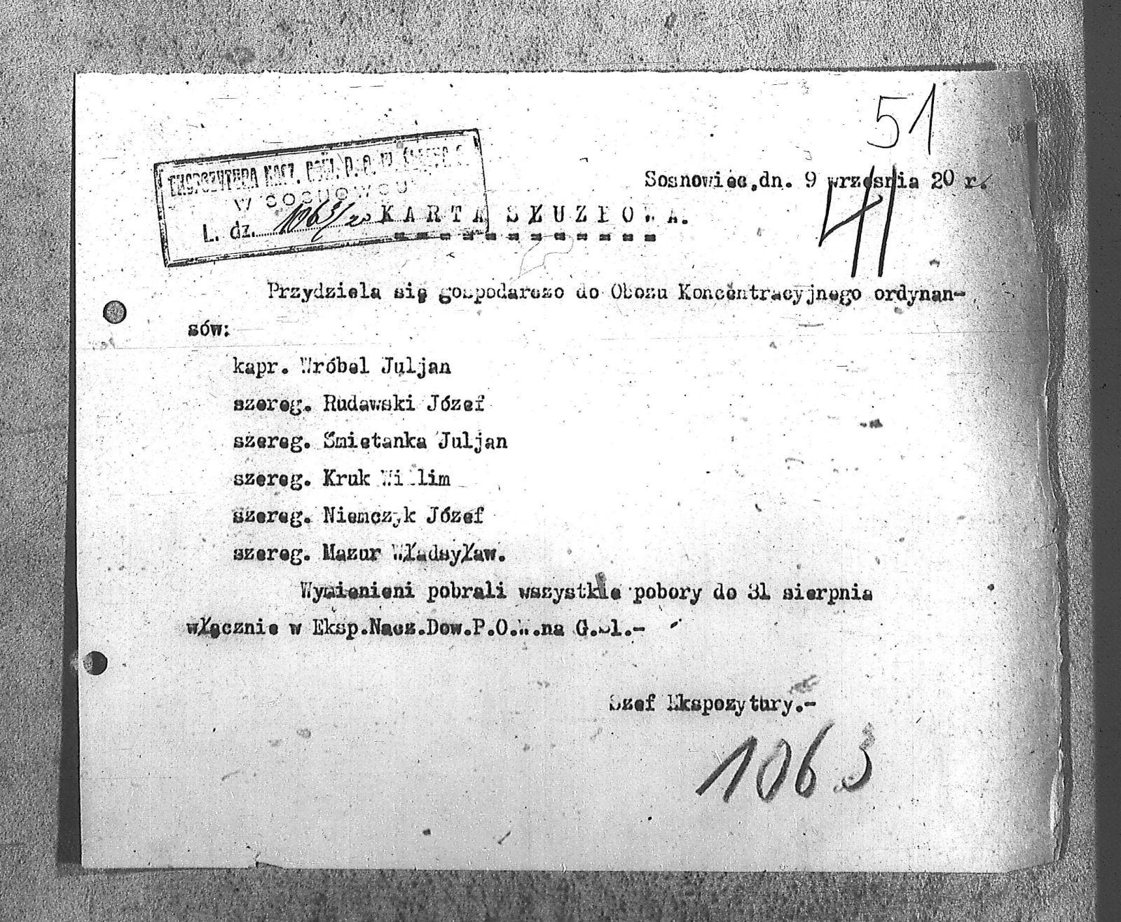 | Osoby | Kruk, Willim; Mazur, Władysław; Niemczyk, Józef; Rudawski, Józef; Śmietanka, Juljan; Wróbel, Julian; |