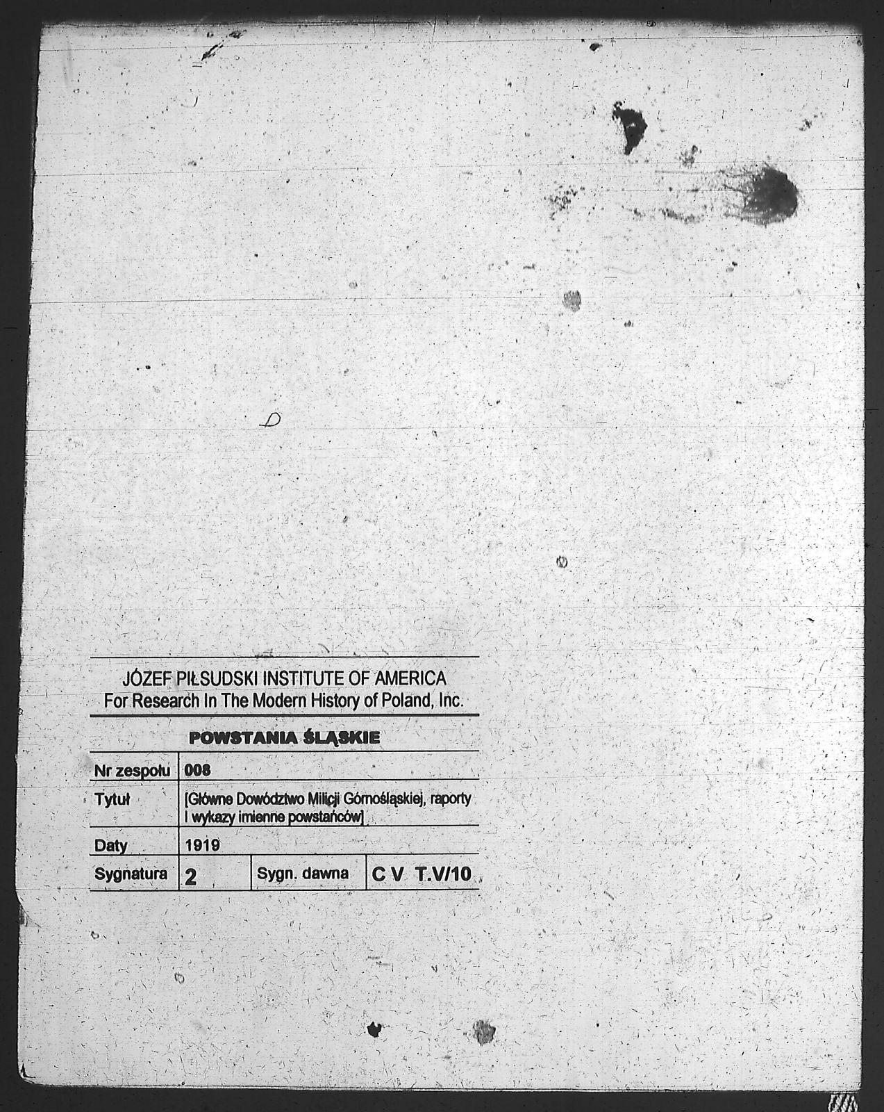 Tytuł teczki[Główne Dowództwo Milicji Górnośląskiej, raporty i wykazy imienne powstańców]