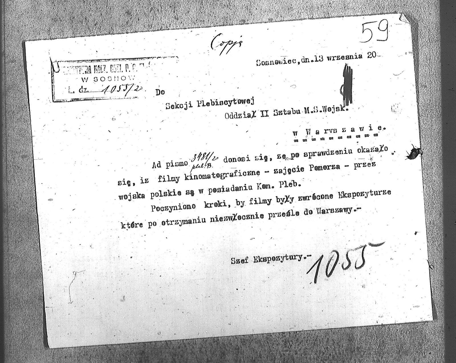 | Tytuł | Do Sekcji Plebiscytowej Oddział II Sztabu Ministerstwa Spraw Wojskowych w Warszawie |