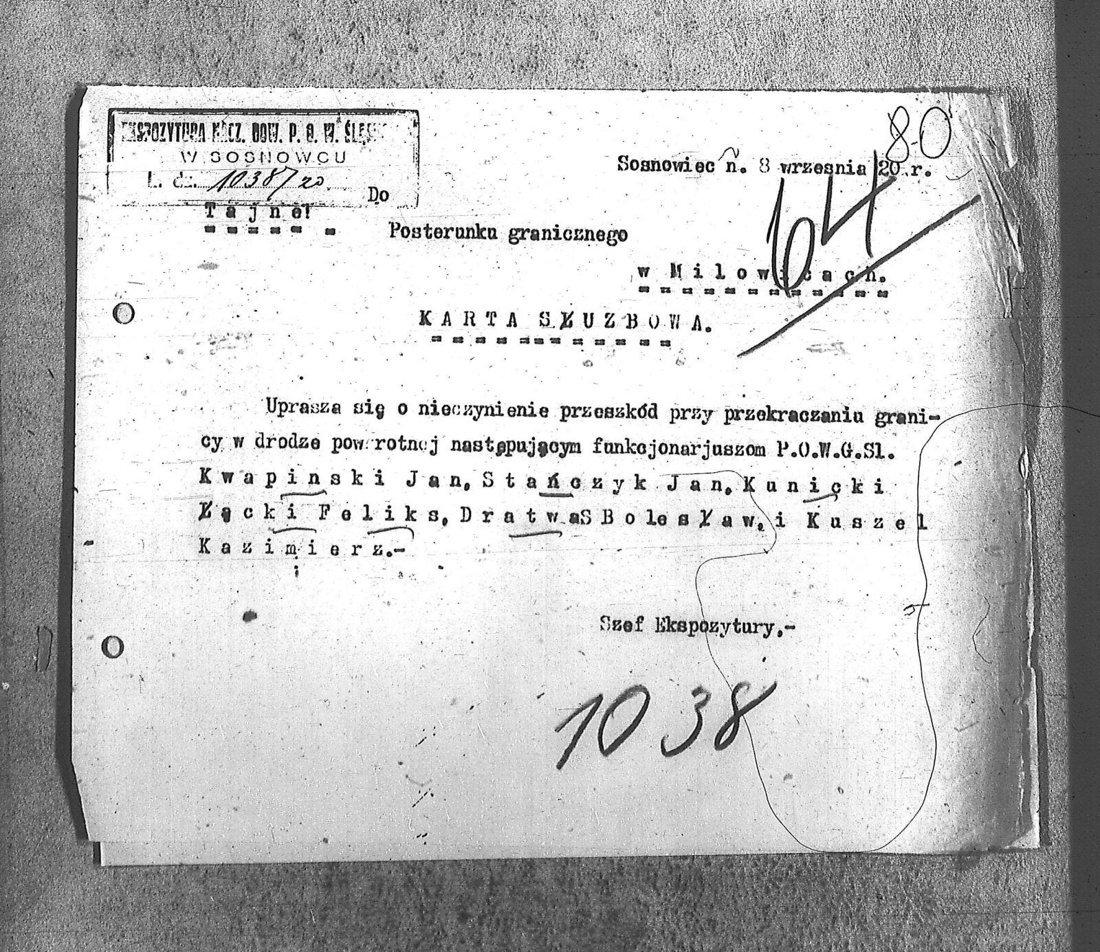 | Osoby | Dratwa, Bolesław; Kunicki; Kuszel, Kazimierz; Kwapiński, Jan; Łącki, Feliks; Stańczyk, Jan; |
