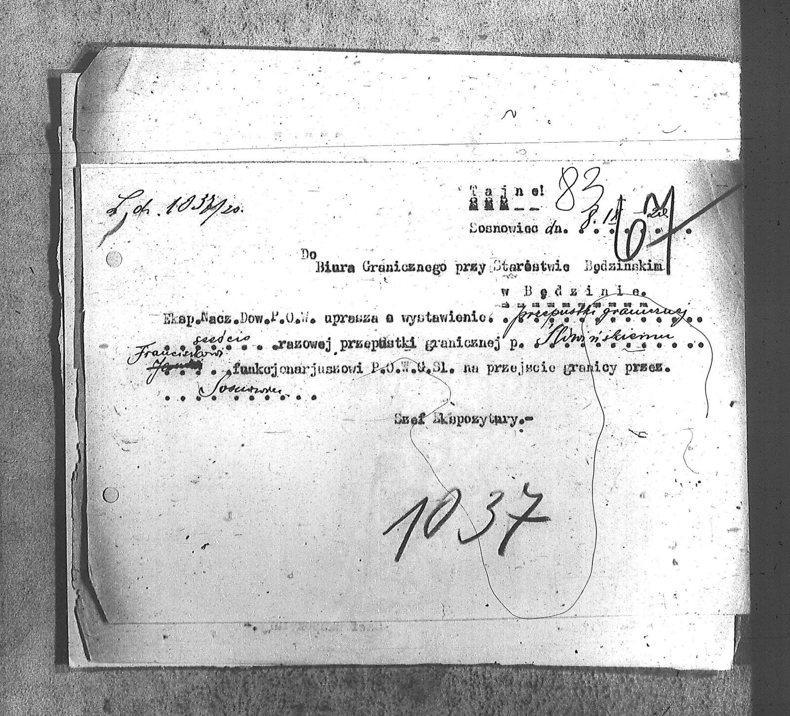 | Tytuł | Do Biura Granicznego przy Starostwie Będzińskim w Będzinie |