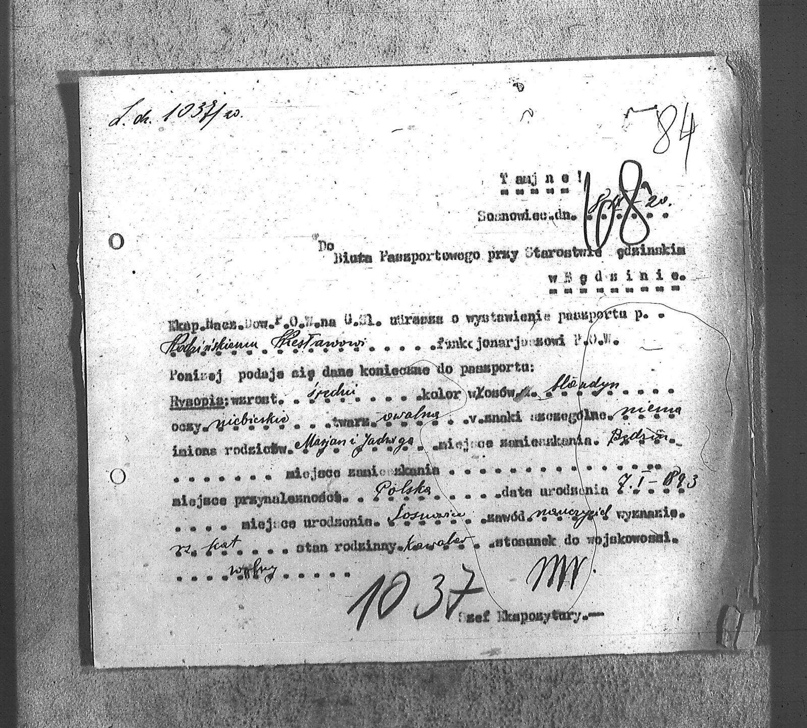 | Tytuł | Do Biura Paszportowego przy Starostwie Będzińskim w Będzinie |