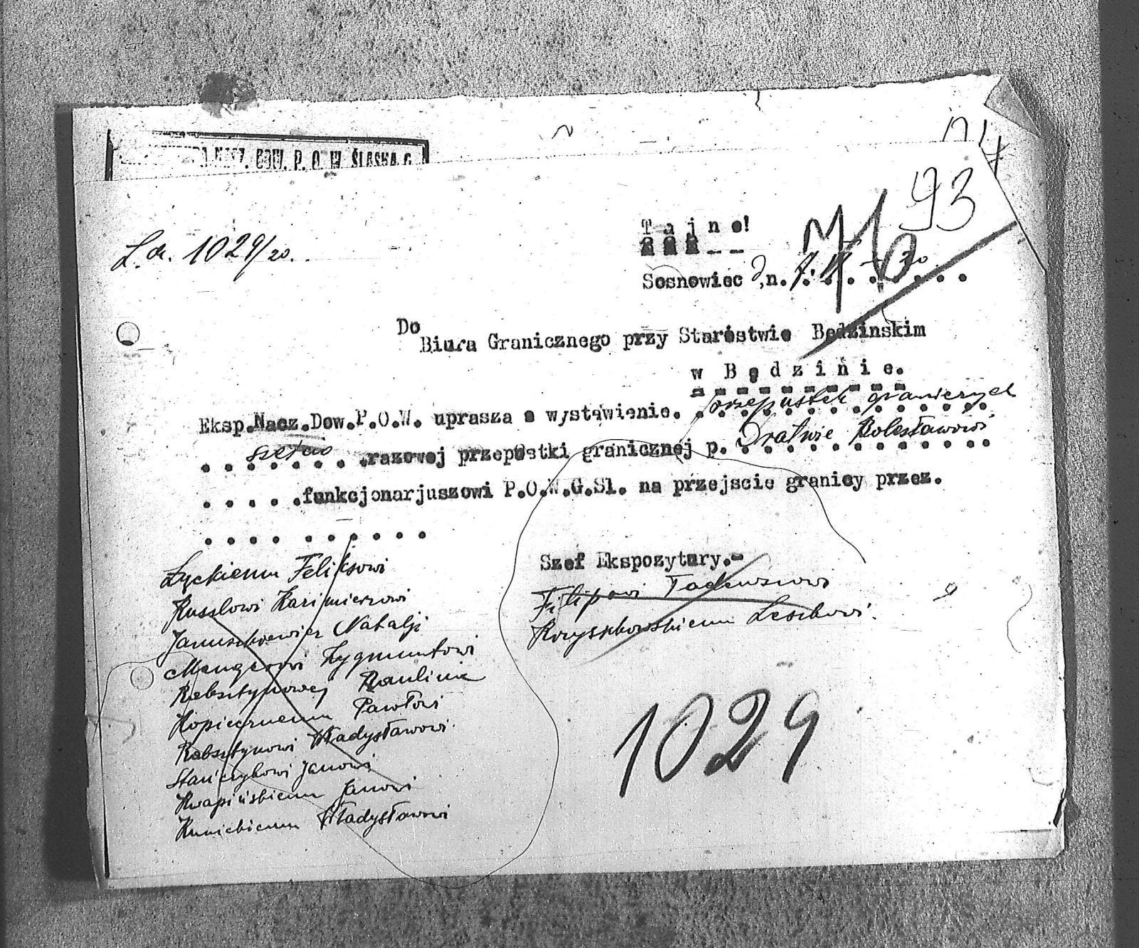 | Tytuł | Do Biura Granicznego przy Starostwie Będzińskim w Będzinie |