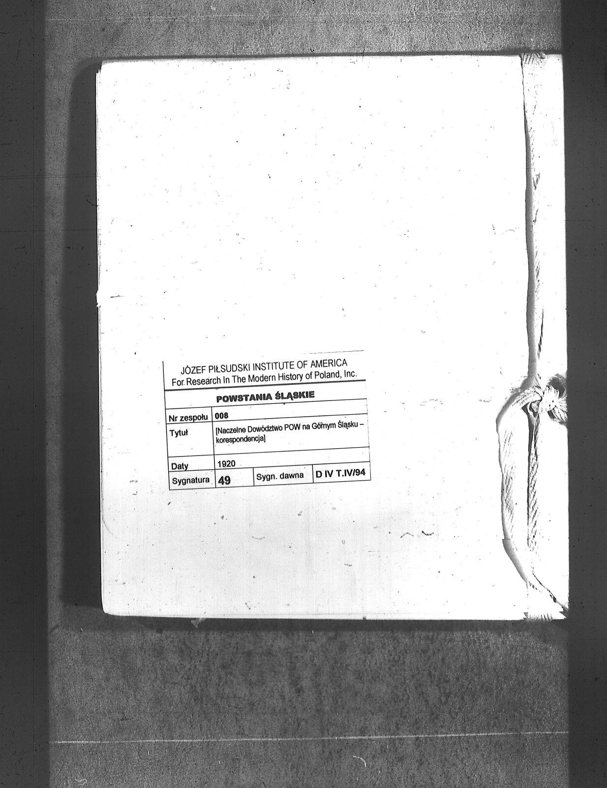 Tytuł teczki[Naczelne Dowództwo POW na Górnym Śląsku - korespondencja]