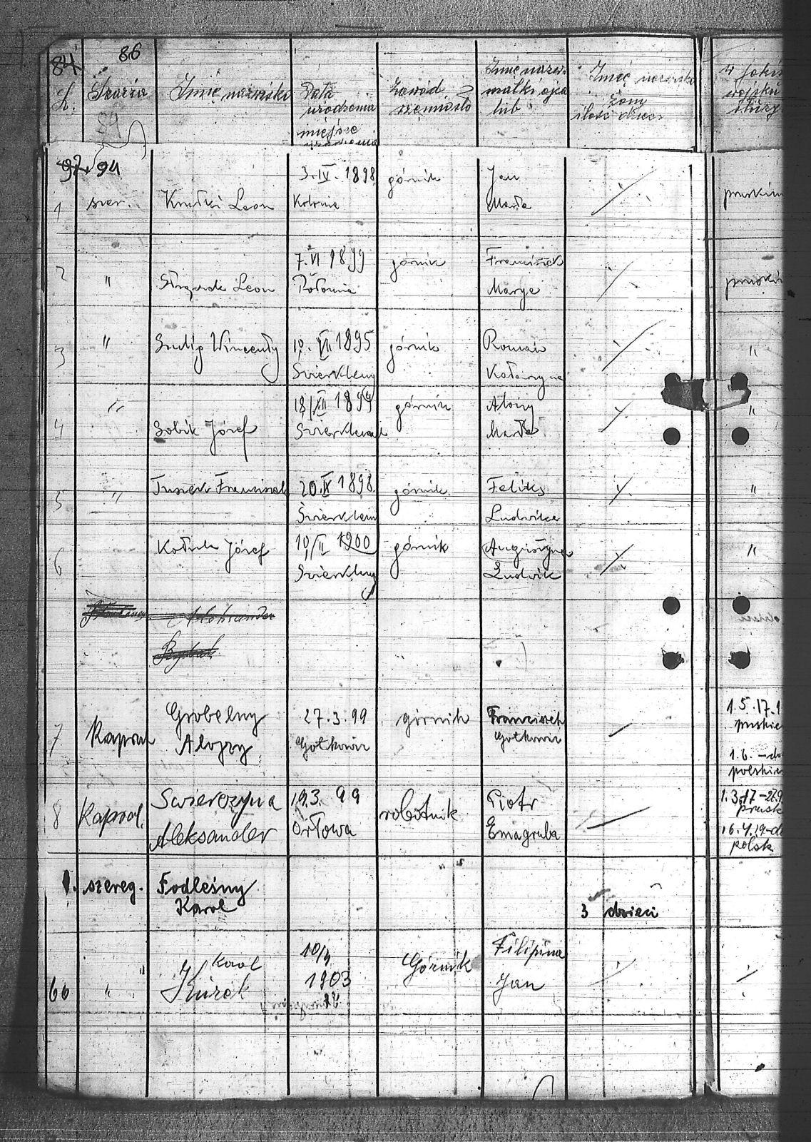Baherek, Władysław; Bańko, Ludwik; Basajewski, Józef; Bednarczyk, Wincenty; Bednarek, Ludwik; Bromblyś, Franciszek; Bromblyś, Ludwik; Brzuszkiewicz, Feliks; Chęciński, Jan; Chrubik, Wincenty; Chruszczelowski, Józef; Czapliński, Franciszek; Deźakowski, Leon; Dnubiel, Stanisław; Gelo, Marian; Grobelny, Alojzy; Jagodziński, Antoni; Jankowski, Paweł; Jordan, Karol; Kapiec, Jan; Komorowski, Władysław; Kosiński, Stanisław; Kotucki, Feliks; Kotula, Józef; Kowalewski, Aleksander; Kółakowski, Marcel; Kórakowski, Władysław; Krenz, Władysław; Królak, Paweł; Krutki, Leon; Krzyszkowski, Leszek; Kurawski, Hubert; Kuschoź, Antoni; Kuzek, Karol; Lembok, Paweł; Leszczak, Stanisław; Łóczak, Antoni; Marciniak, Stanisław; Matczak, Stanisław; Merczyt, Walenty; Misiewicz, Zygmunt; Niemiec, Jozef; Nowak, Antoni; Oberbek, Adam; Olesiak, Stefan; Olszewski, Roman; Orzechowski, Emil; Ośliślo, Józef; Pochowicz, Stefan; Podleśny, Karol; Podolski, Marian; Roszczyk, Richard; Rybak, Aleksander; Salomon, Juliusz; Skorupa, Andrzej; Sobik, Józef; Stachlewski, Stefan; Staniszewski, Julian; Strączek, Leon; Szafran, Ludwik; Szulig, Wincenty; Szulik, Józef; Śliwczyński, Walenty; Świerczek, Mikołaj; Świerczyna, Aleksander; Talaśka, Bolesław; Tomaszewski, Stanisław; Toporek, Wojciech; Tuszen, Franciszek; Wala, Dominik; Warzeszka, Jan; Wiratz, Jan; Wojciechowski, Józef; Zalewski, Jan; Zawiślak, Józef; |