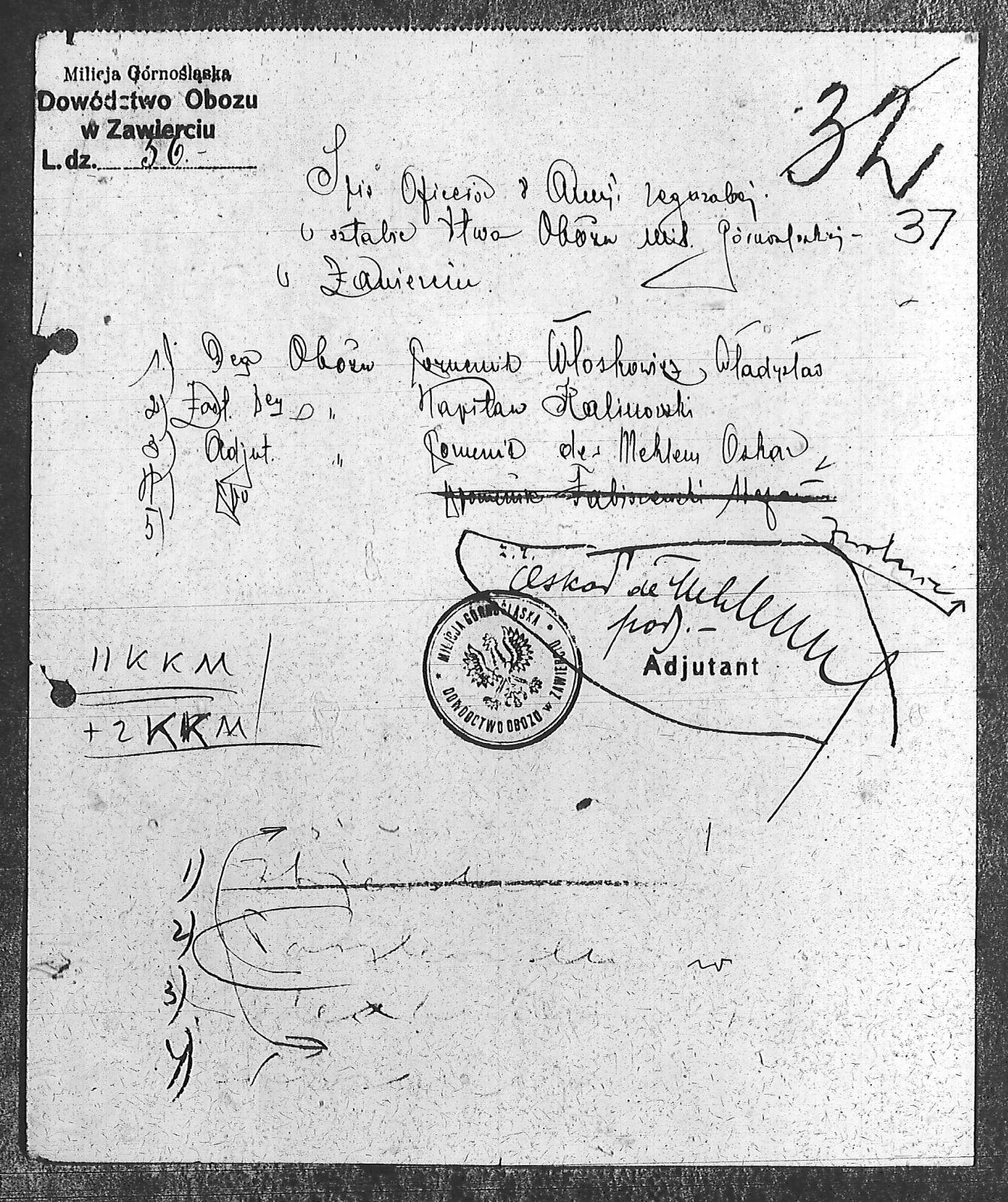 Tytuł Spis oficerów z armii regularnej w sztabie Dowództwa Obozu Milicji Górnośląskiej w Zawierciu