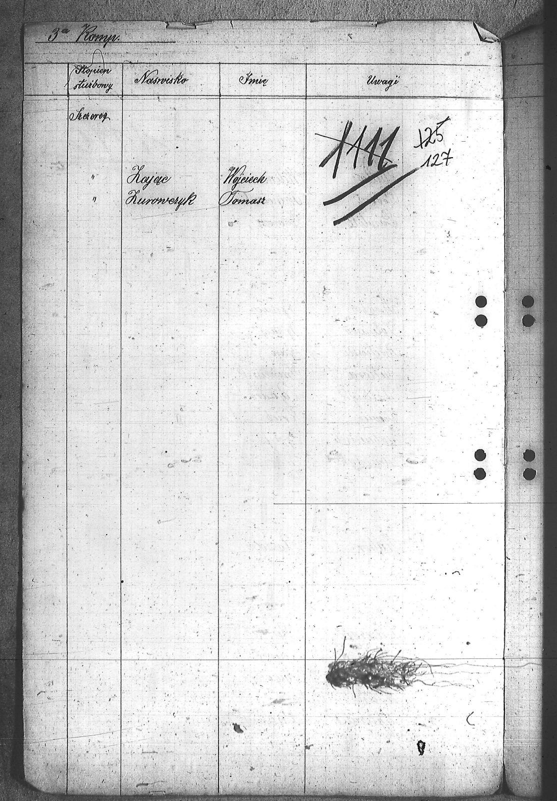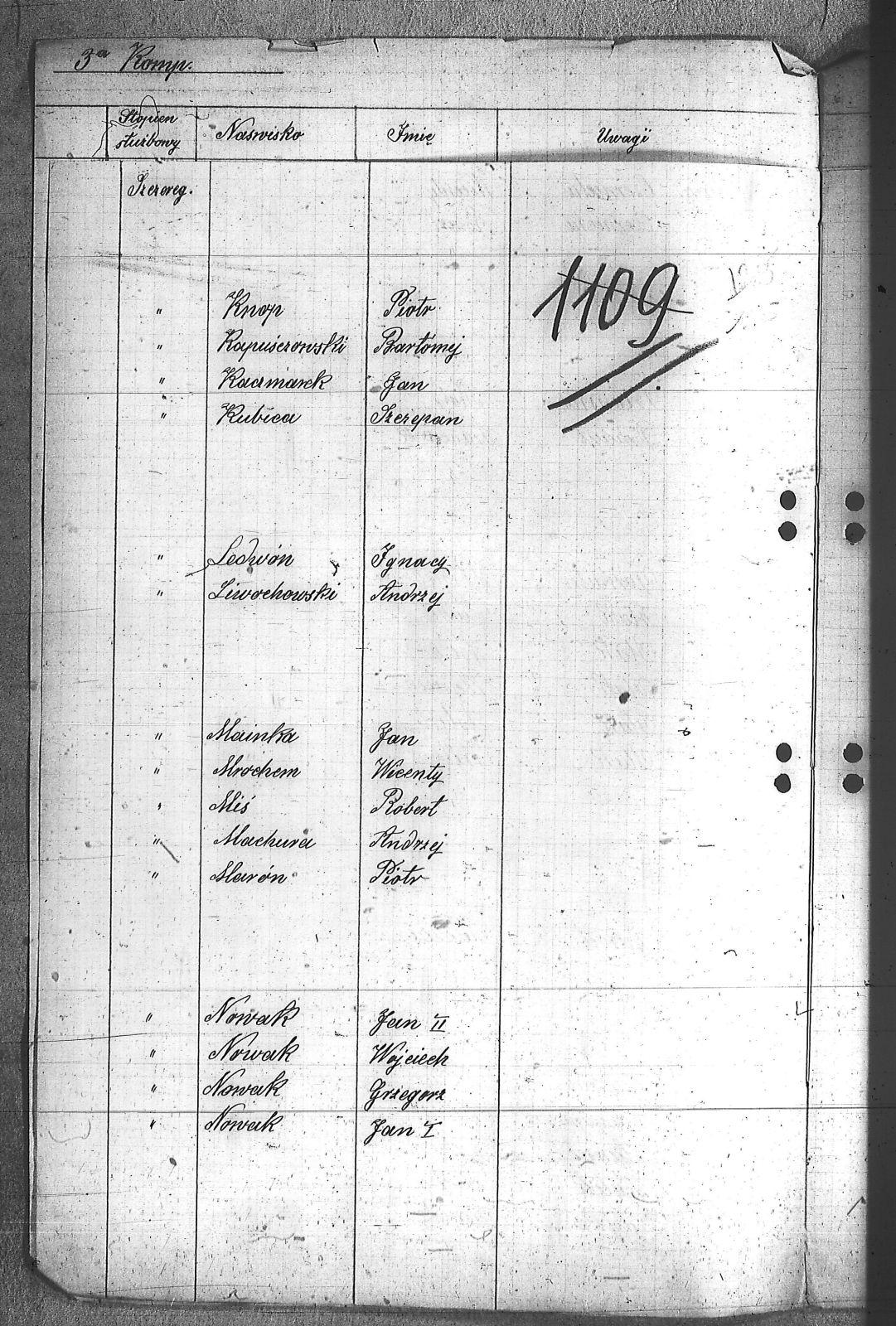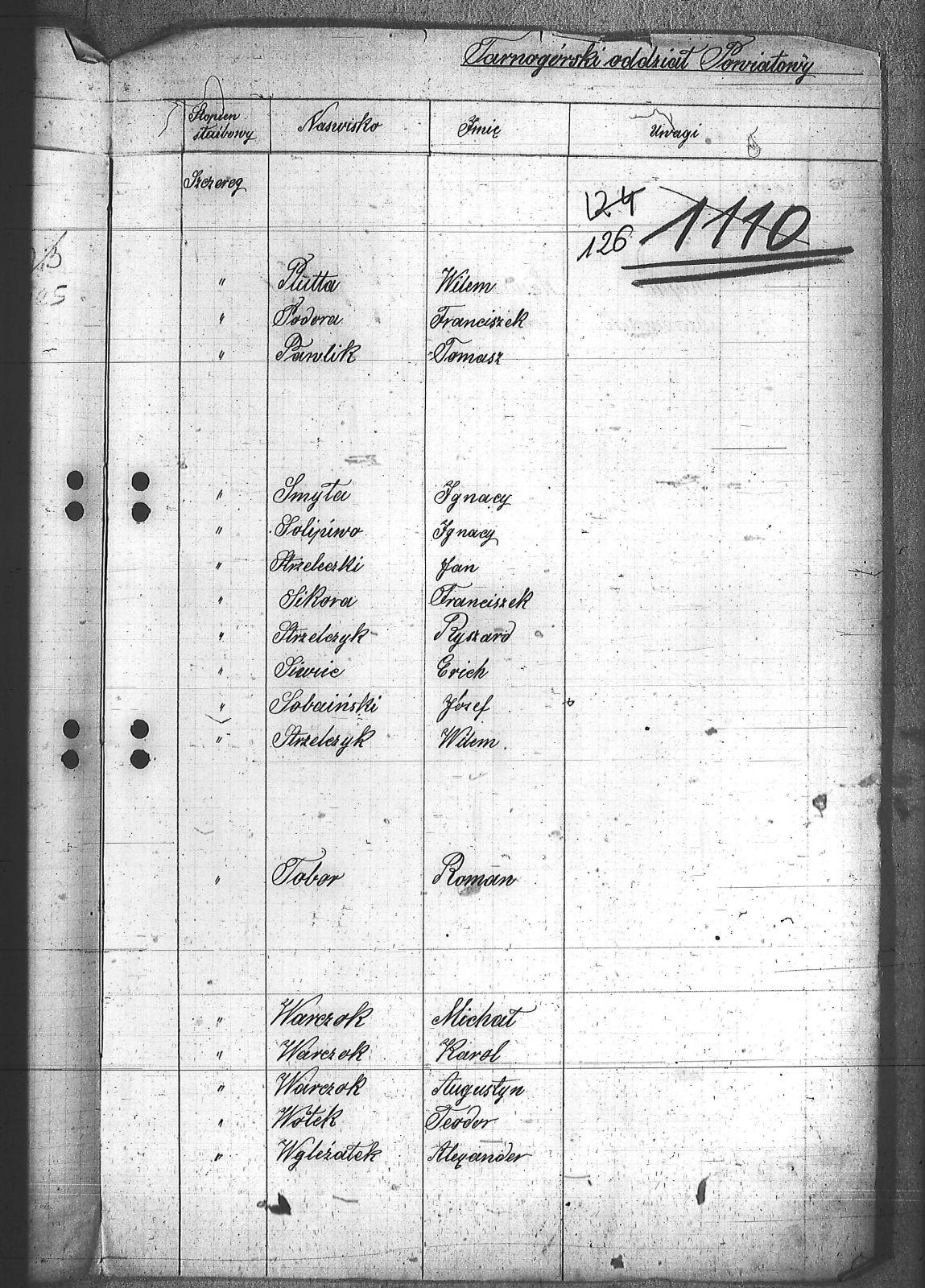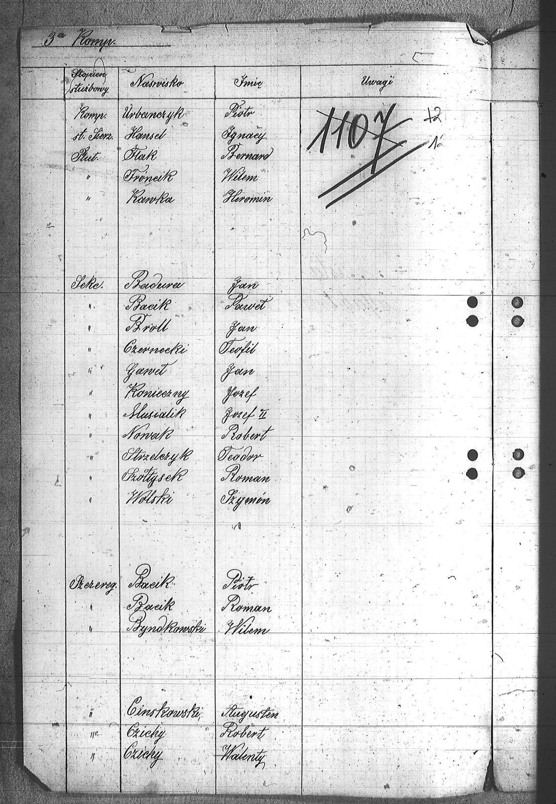 Bacik, Paweł; Bacik, Piotr; Bacik, Roman; Badura, Jan; Broll, Jan; Byndkowski, Wilem; Cichy, Robert; Cichy, Walenty; Cinskowski, Augustyn; Czernecki, Robert; Czernecki, Teofil; Czernecki, Wincenty; Dodicius, Franciszek; Dzionsko, Piotr; Flak, Bernard; Flak, Jerzy; Flak, Paweł; Flak, Robert; Flak, Wilem; Flak, Wojciech; Forraiter, Robert; Franiel, Franciszek; Fruncik, Wilem; Gaweł, Jan; Gaweł, Ludwig; Hansel, Ignacy; Hansel, Jakub; Hetmańczyk, Wilem; Hojka, Tomasz; Holik, Alojzy; Horzela, Józef; Kaczmarek, Jan; Kapuściowski, Bartłomiej; Knop, Piotr; Konieczny, Józef; Kubica, Szczepan; Ledwoń, Ignacy; Liwochowski, Andrzej; Machura, Andrzej; Mainka, Jan; Maroń, Piotr; Miś, Robert; Mrochem, Wincenty; Nowak, Grzegorz; Nowak, Jan I; Nowak, Jan II; Nowak, Robert; Nowak, Wojciech; Pawlik, Tomasz; Plutta, Wilem; Podora, Franciszek; Rawka, Hermin; Sikora, Franciszek; Siwiec, Erich; Slusialik, Józef II; Smyła, Ignacy; Sobaiński, Józef; Solipiwo, Ignacy; Strzelczyk, Teodor; Strzelczyk, Wilem; Strzelecki, Jan; Strzelecki, Ryszard; Szołtysek, Roman; Tobor, Roman; Urbańczyk, Piotr; Warczok, Augustyn; Warczok, Karol; Warczok, Michał; Wolski, Szymon; Wołek, Teodor; Wyleżałek, Aleksander; Zając, Wojciech; Zurowczyk, Tomasz; |