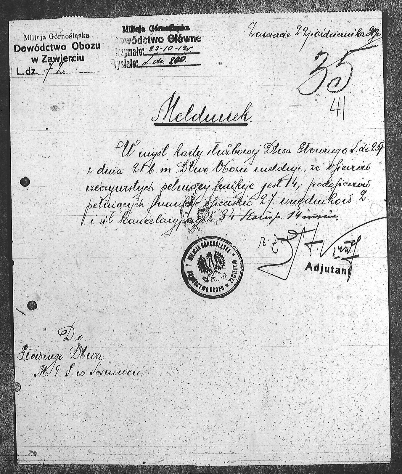 Instytucje Milicja Górnośląska. Obóz w Zawierciu. Dowództwo