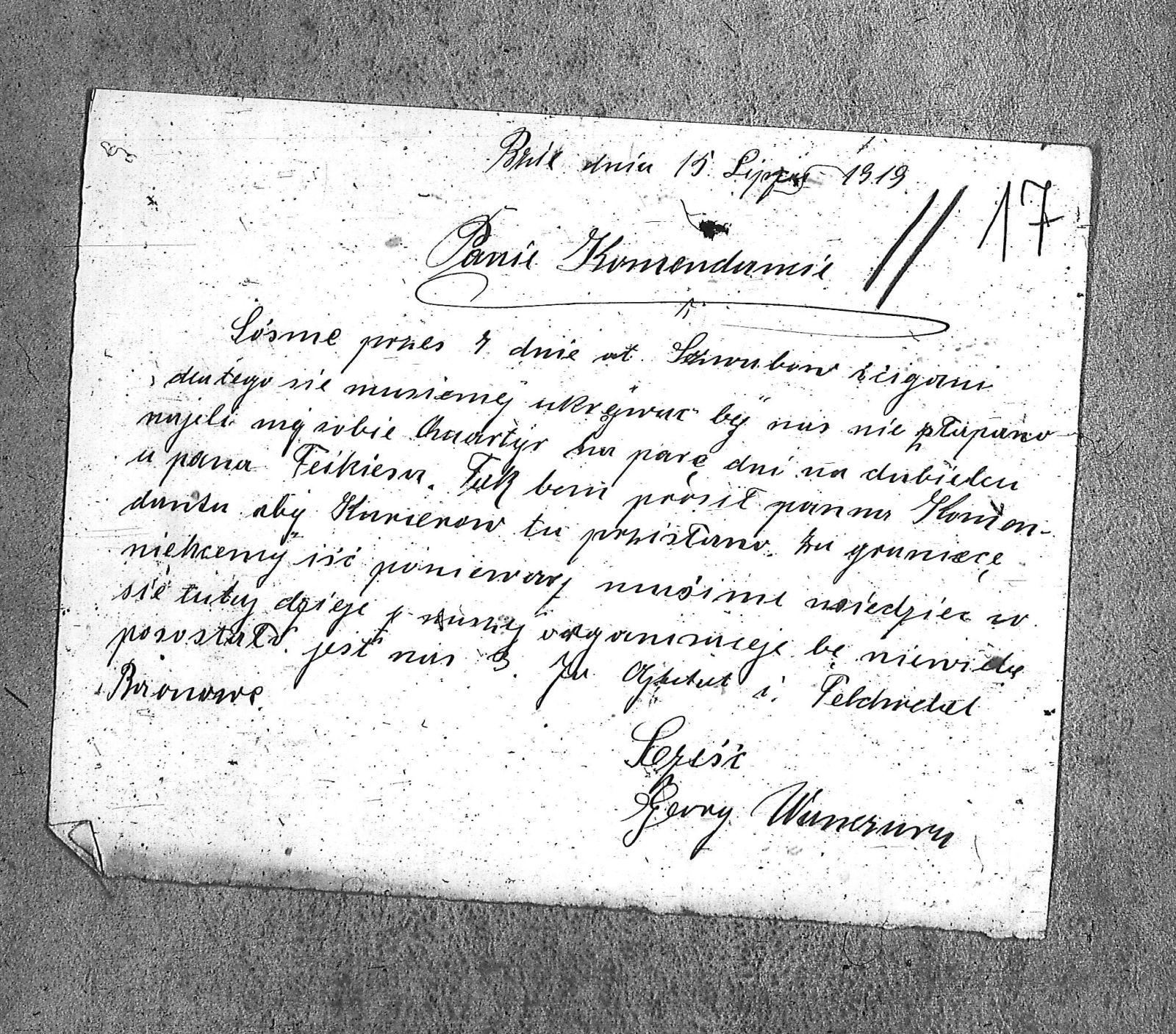 Tytuł List-dokument: "Panie Komendancie"