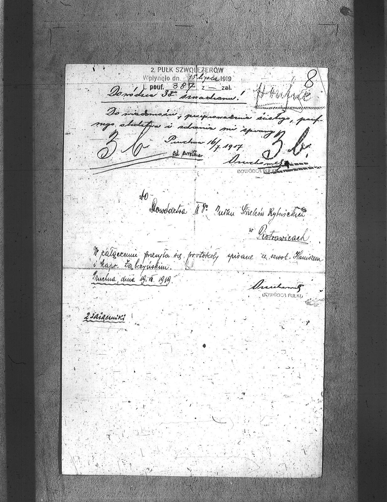 | Tytuł teczki | Naczelne Dowództwo POW na Górnym Śląsku w Sosnowcu – listy oficerów, członków POW, różnych kompani i baonów, sprawozdania, rozkazy i korespondencja II pułku strzelców rybnickich |