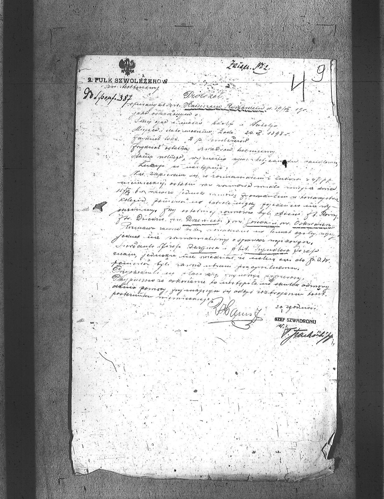 Tytuł teczkiNaczelne Dowództwo POW na Górnym Śląsku w Sosnowcu – listy oficerów, członków POW, różnych kompani i baonów, sprawozdania, rozkazy i korespondencja II pułku strzelców rybnickich