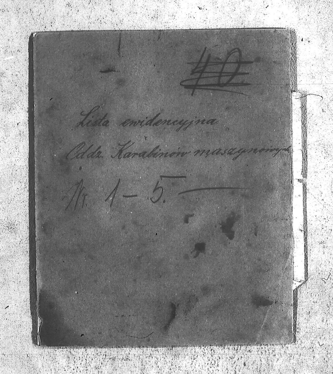 | Tytuł teczki | Naczelne Dowództwo POW na Górnym Śląsku w Sosnowcu – lista ewidencyjna Oddziału Karabinów Maszynowych, książka dokumentów podróży obozu Zawiercie, książka urlopów 2 pułku strzelców bytomskich, księga urlopników I Komp. i lista chorych I Kompanii, |