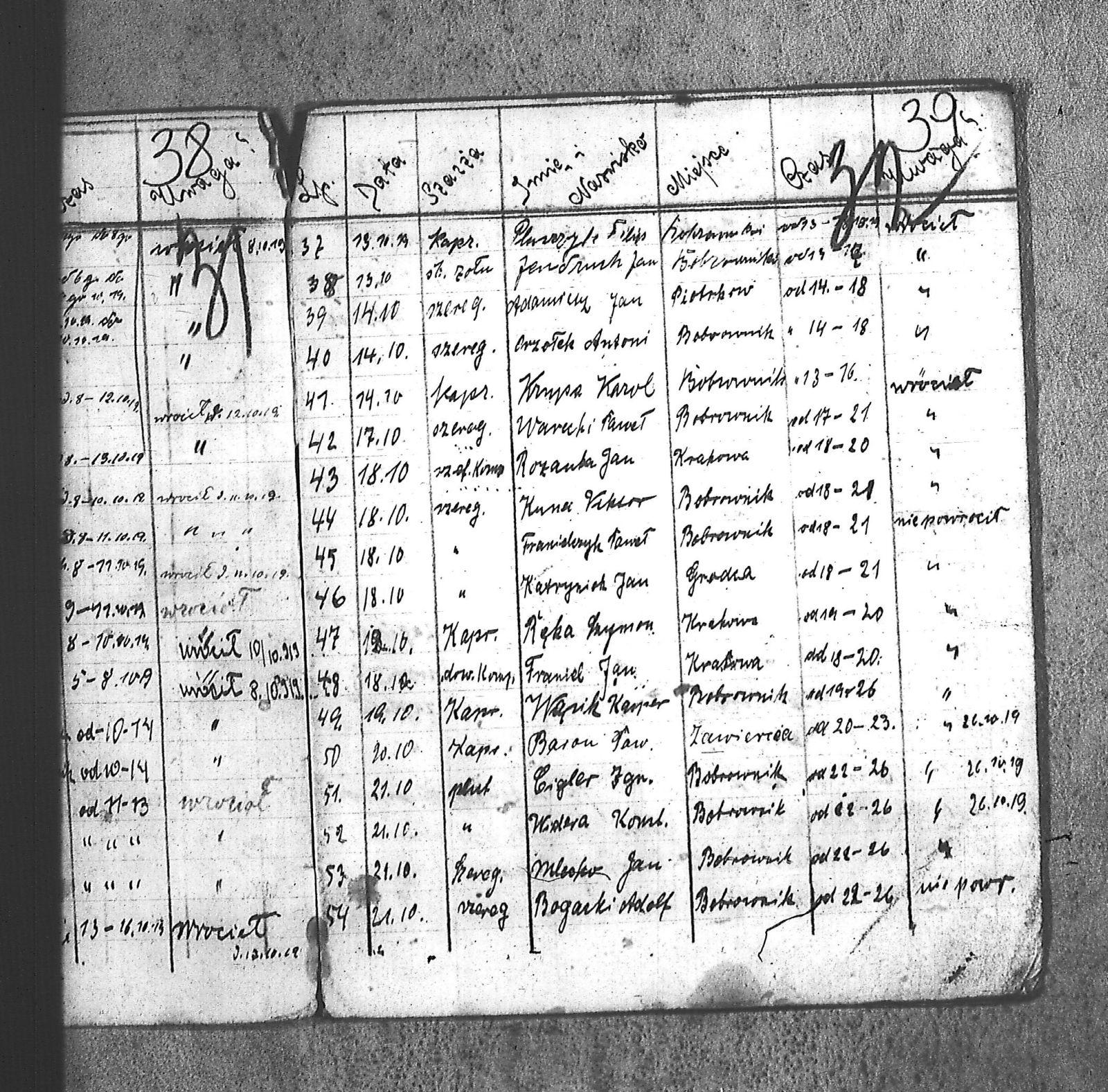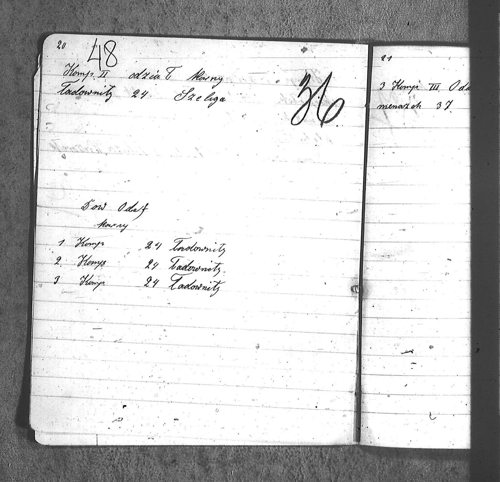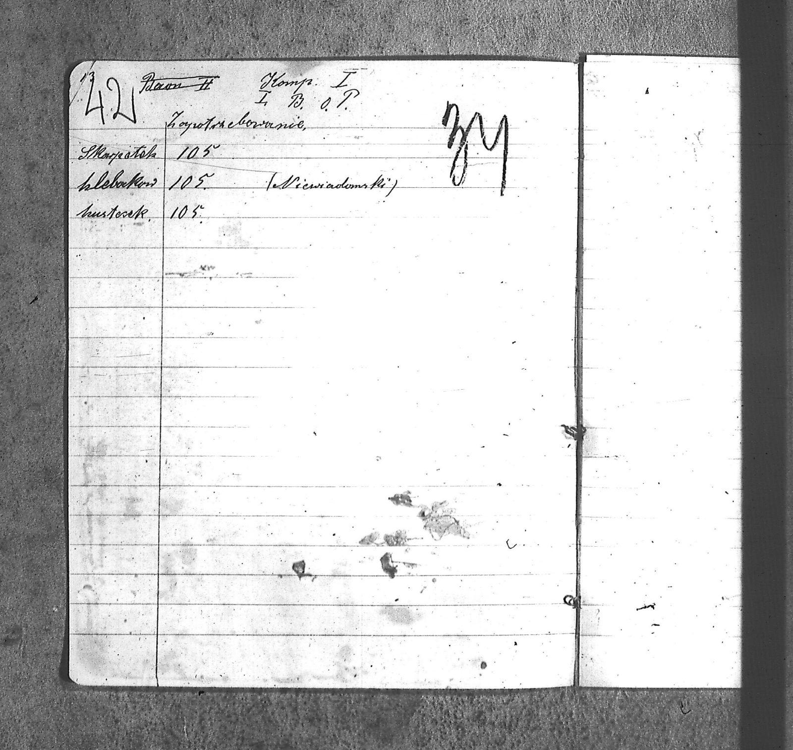 [Adamierz], Jan; [Adomieły], Jan; [Bandura], W.; [Blacl], Franciszek; [Błack], Vinc.; [Cigler], [Ignacy]; [Francielowski], Jan; [Franielczyk], Paweł; [Gorowiet], Jan; [Izański], Zygmunt; [Jamota], E.; [Jendruch], Jan; [Kaizer], W.; [Kasprzyk], Franciszek; [Kasprzyk], Jan; [Katryniok]; [Krirżaczek]; [Leszik], Robert; [Lezik]; [Mekherczyk]; [Mlecko], [Aleksander]; [Mlecko], Jan; [Orzołek], Antoni; [Pawlik], Jan; [Prot], Jan; [Ulecko], Jan; [Wąsik], Kacper; [Wuhna], Karol; [Zolebel], Wilhelm; Adamiec, [nieczytelne]; Baron, [Paweł]; Baron, Paweł; Bielak, Robert; Bogacki, Adolf; Bogacki, Paweł; Bryłka; Dąbrowski, Wawrzyn; Franiel, Jan; Froszka, Jan; Głodzik, Teofil; Gola, Szczepan; Hanzel; Heflik; Janota, Franciszek; Katryniok, Jan; Kępny, [Wincenty]; Krupa, Karol; Kulisz, [Rainhold]; Kulisz, Józef; Kuna, Viktor; Miodek, Józef; Niewiadomski; Nowacki; Nowacki, Paweł; Opielka, Karol; Pietrzyk, [Kazimierz]; Pluszczyk, Filip; Poremba, Bernard; Ręka, Szymon; Rożanka, Jan; Smyła, Winc.; Troska, Jan; Warecki, Paweł; Wązik, Kacper; Widera, B.; Zdebel, Wilhelm; |