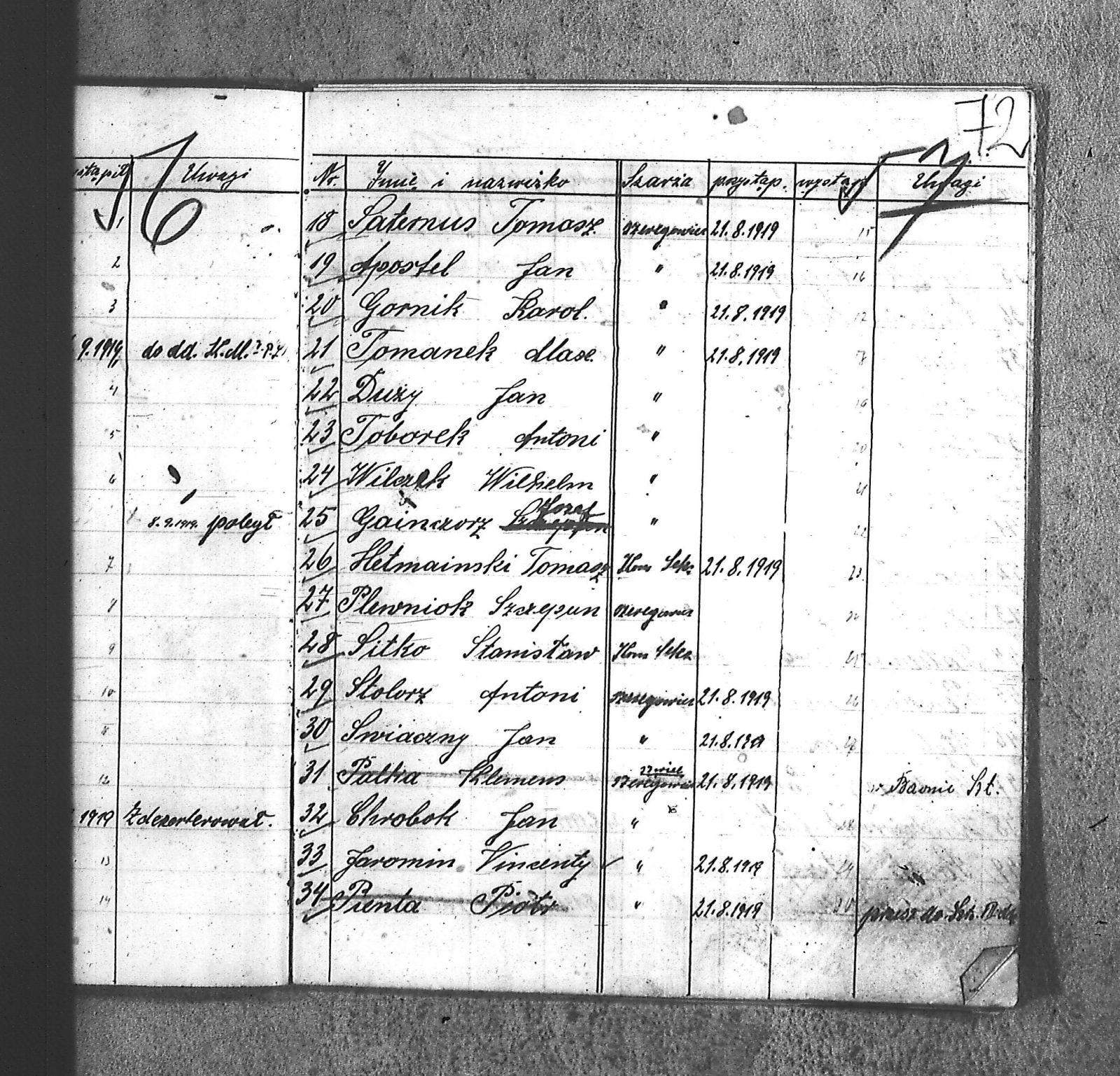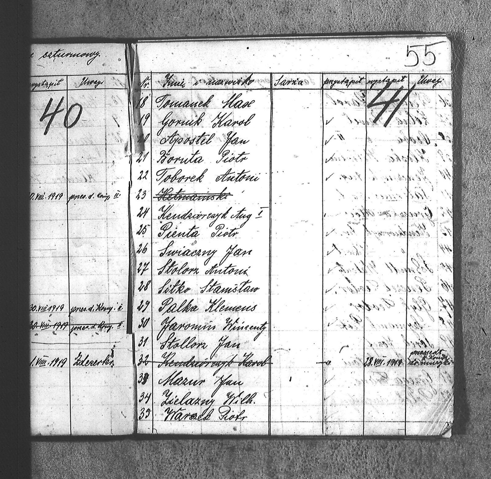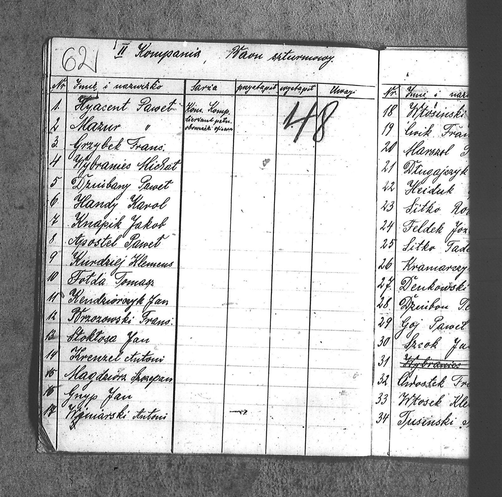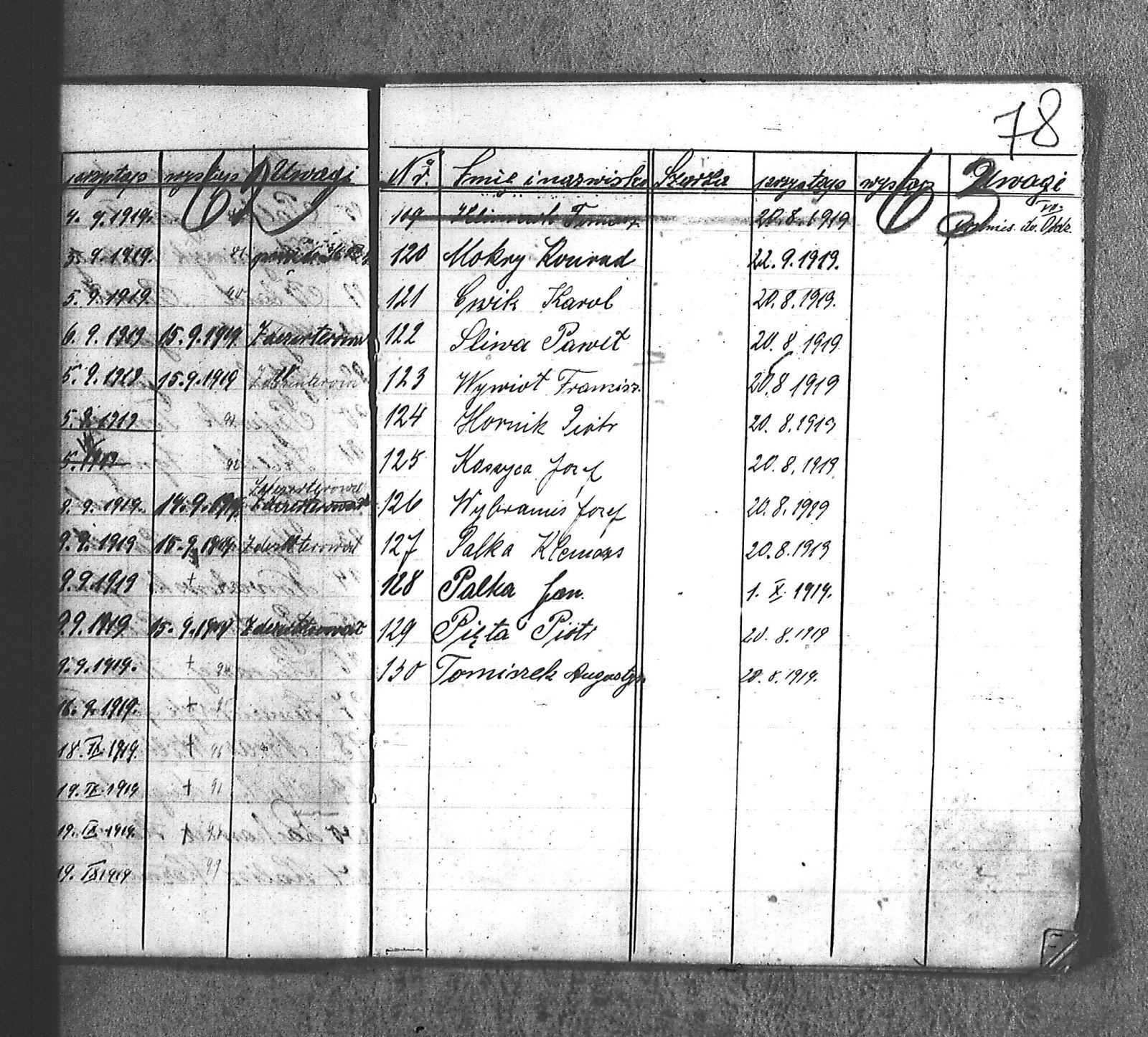 [Danecki], [Franciszek]; [Długajczyk], Wawrzyn; [Dombek], Emil; [Dombek], Walenty; [Dzibany], Paweł; [Dzibon], Teodor; [Ferusol], Jan; [Gainczorz], Józef; [Gincorz], Józef; [Guziak], Władysław; [Habryka], Aug.; [Hachuła], Jan; [Hajduk], Franciszek; [Hiacent], Paweł; [Jaśniski], Jan; [Jaśniski], Józef; [Jochemczyk], [Franciszek]; [Kapuściok], Ludwik; [Kapuśniok], Piotr; [Kaszyca], Józef; [Klimczok], Szczepan; [Klmiern], Walenty; [Kluiczok], Tomasz; [Kontny], Piotr; [Mikula], [Franciszek]; [Ożuchowski]; [Pająk], Józef; [Pająk], Tomasz; [Pioskowik], Piotr; [Rzurziowski], Kazimierz; [Saternus], [Barthom]; [Sewerin], Ludwik; [Sewerm], Jan; [Stachon], Józef; [Szcok], Jan; [Śliwa], Paweł; [Warczek], Piotr; [Winkowski], Szczepan; [Wojcik], Ignacy; [Wybramec], Józef; [Zając], Ludwik; [Zając], Teodor; Apostel, Edward; Apostel, Jan; Apostel, Paweł; Bak, Konstanty; Banasik, Piotr; Bara, Antoni; Bartnicki, Izydor; Bicz, Bolesław; Biecki, Józef; Biecki, Teodor; Bieski, Teodor; Blant, Paweł; Błotko, Jan; Błotko, Ludwik; Boruta, Piotr; Bożek, Jan; Bożek, Karol; Brom, Teodor; Bromborcz, Piotr; Bromboszcz, [Wilhelm]; Brzoska, Leopold; Brzozka, Leopold; Brzozowski, [Franciszek]; Chowaniec, [Franciszek] I; Chowaniec, [Franciszek] II; Chrobok, Jan; Chrostek, [Franciszek]; Cieplik, Tomasz; Cieplok, Augustyn; Cwik, Karol; Czaja, Jan; Czempas, Emil; Ćwik, Franciszek; Danecki, [Franciszek]; Daniś, Józef; Deda, Augustyn; Denczyk, Karol; Deńczyk, Karol; Dera, [Franciszek]; Deukowski, Paweł; Długajczyk, [Tomasz]; Długajczyk, Jan; Długajczyk, Konstanty; Długajczyk, Wal.; Długajczyk, Walenty; Długajczyk, Wawrzyn; Dreinert, Andrzej; Duzy, Jan; Duży, Jan; Duży, Piotr; Feldek, Józef; Feldek, Ludwik; Ferusol, Jacob; Fiegel, Teofil; Figura, Ludwig; Fołda, Paweł; Fołda, Tomasz; Gecman, Szczepan; Głyk, Jan; Głyk, Teodor; Gnyp, Jan; Goj, Antoni; Goj, Ignacy; Goj, Paweł; Goj, Wilhelm; Gornik, Karol; Gruszka, [Alojzy]; Grzega, [Franciszek]; Grzyb, Klemens; Grzyb, Marcin; Grzybek, [Franciszek]; Habryka, Augustyn; Habryka, Jan; Habryka, Wilhelm; Handy, Karol; Haśnik; Heiduk, Paweł; Hetmański, [Tomasz]; Hetmański, [Wojciech]; Hetmański, Jakub; Hetmański, Józef; Hetmański, Piotr; Hetmański, Tomasz; Hetmański, Wojciech; Hornik, Piotr; Howaniec, [Franciszek] I; Ikielek, Ignacy; Iwanek, Wilhelm; Jamrozy, [Franciszek]; Jamrozy, [Franciszek] II; Jamrozy, Antoni; Jamrozy, Jan; Jamrozy, Mikołaj; Jamrozy,[Franciszek]; Jamroży, Jan; Janota, Piotr; January, Antoni; Jaromin, Vincenty; Jaromin, Wincenty; Jasik; Jelonek, Józef; Jenczmyk, Aug.; Jendyczek, Wawrzyn; Jendyk, Melchior; Jeruzol, Jacob; Jeruzol, Jan; Jurowicz, Józef; Kalisz, [Kaźmierz]; Kapuszciok, Wilhelm; Kapuściok, Wilhelm; Karkoszka, Sylwester; Karwicki, Jan; Kaszyca, Józef; Kendzierczyk, Augustyn_II; Kendzierczyk, Paweł; Kendziorczyk, Aug._I; Kendziorczyk, Aug._II; Kendziorczyk, August_II; Kendziorczyk, Jan; Kendziorczyk, Karol; Kendziorczyk, Paweł; Kieromin, Klemens; Klekot, Jakob; Klimczok, Tomasz; Klimczuk, Tomasz; Klinczok, [Franciszek]; Kloska, Wilhelm; Knapik, Jakub; Knapik, Paweł; Knapik, Tomasz; Konieczny, [Franciszek]; Korus, Paweł; Korusiewicz, Julian; Kost, Franciszek; Kost, Stanisław; Kost, Teodor; Kostoł, Teodor; Koszyca, Józef; Kozioł, Jan; Kraczla, Szczepan; Kramarczyk, [Franciszek]; Krenzel, Antoni; Książkiewicz, Tadeusz; Kubica, Wiktor; Kuderski, Augustyn; Kuderski, Jan; Kurdziej, Klemens; Kurdziej, Roman; Kurdziej, Wilhelm; Kuś, Jan; Lachowicz, Henryk; Lukaszewski, Kaz.; Łokietek, Władysław; Magdziorz, Szczepan; Malorny, Franciszek; Malorny, Lev; Malorny, Marcin; Marszol, Teodor; Maslorz, Antoni; Mastorz, Antoni; Mazur, Jan; Mazur, Józef; Mazur, Paweł; Mazur, Szczepan; Mendera, Paweł; Michalik, Paweł; Misterek, Karol; Mokry, Konrad; Moron, Franciszek; Moron, Paweł; Musioł, R.; Myrda, [Franciszek]; Myrda, Aug.; Myrda, Augustyn; Myrda, Paweł; Niemiec, Michał; Noras, Wilhelm; Noraz, Wilhelm; Nowakowski, Jan; Olej, Piotr; Osoba, Augustyn; Osoba, Paweł I; Osoba, Paweł II; Ostrowski, Jan; Pajonk, Tomasz; Palka, Jan; Palka, Jan I; Palka, Jan II; Palka, Klemens; Palka, Wilhelm; Paternus, Tomasz; Penczek, Teodor; Peszke, Jan; Pienta, Piotr; Pięta, Piotr; Pilarek, Paweł; Pioskowik, Piotr; Plewniok, Szczepan; Pmok, Wawrzyn; Pniok, Antoni; Pniok, Wawrzyn; Polok, Augustyn; Porwit, [Franciszek]; Porwoł, Jan; Potrzeba, Wawrzyn; Proc, Piotr; Pryszcz, Franciszek; Pypłac, Piotr; Pypłać, Klemens; Radziewicz, Bolesław; Rak, Karol; Reczek, Konstanty; Richter, Piotr; Roik, Augustyn; Sapyta, Wojciech; Saternus, Bart.; Saternus, Tomasz; Schmidt, Paweł; Schmidt, Szczepan; Schmidt, Walenty; Schmiedt, Paweł; Schmiedt, Szczepan; Sewerin, Antoni; Sewerin, Jan; Sidełko, Józef; Sitko, Roman; Sitko, Stanisław; Sitko, Tadeusz; Sitko, Walenty; Sliwa, Paweł; Smutny, Viktor; Smutny, Wiktor; Snopek, Marian; Sojka, [Franciszek]; Sojka, Antoni; Sorek, Józef; Sorek, Ludwik; Sorek, Paweł; Sporys, [Max]; Stachon, Józef; Stachoń, Józef; Stanoszek, Ludwig; Stanoszek, Ludwik; Stokłosa, Jan; Stollorz, Jan; Stollorz, Tomasz; Stolorz, Antoni; Stolorz, Leo; Stolorz, Lev; Stolorz, Teofil; Swiaczny, Jan; Szemanek, Piotr; Szendera, [Franciszek]; Szmiedt, Walenty; Szyja, Franciszek; Szymanek, Piotr; Ścierski, Klemens; Toborek, Antoni; Toborek, Paweł; Tomanek, [Hah]; Tomanek, [Max.]; Tomiczek; Tomiczek, Augustyn; Tusiński, Paweł; Urbanek, Jan; Urbanek, Jan_II; Urbańczyk, Michał; Urbis, Teodor; Warczek, Piotr; Wesołek, Wilhelm; Wilczek, Jan; Wilczek, Paweł; Wilczek, Wilhelm; Winiarski, Antoni; Włosek, Klemens; Wójcik, Jan; Wrona, Marcin; Wtosiński, Józef; Wybramis, Józef; Wybraniec, [Jackob]; Wybraniec, Jakob; Wybraniec, Jan; Wybraniec, Józef; Wybraniec, Michał; Wyrda, Paweł; Wywioł, [Franciszek]; Wywiot, Franciszek; Zając, Szczepan; Zawadzki; Zawadzki, [Franciszek]; Ziemba, Szczepan; Zyskowicz, Bolesław; Żelazny, [Wilhelm]; Żelazny, Antoni; Żelazny, Wilhelm; Żołna, Michał; Żołn