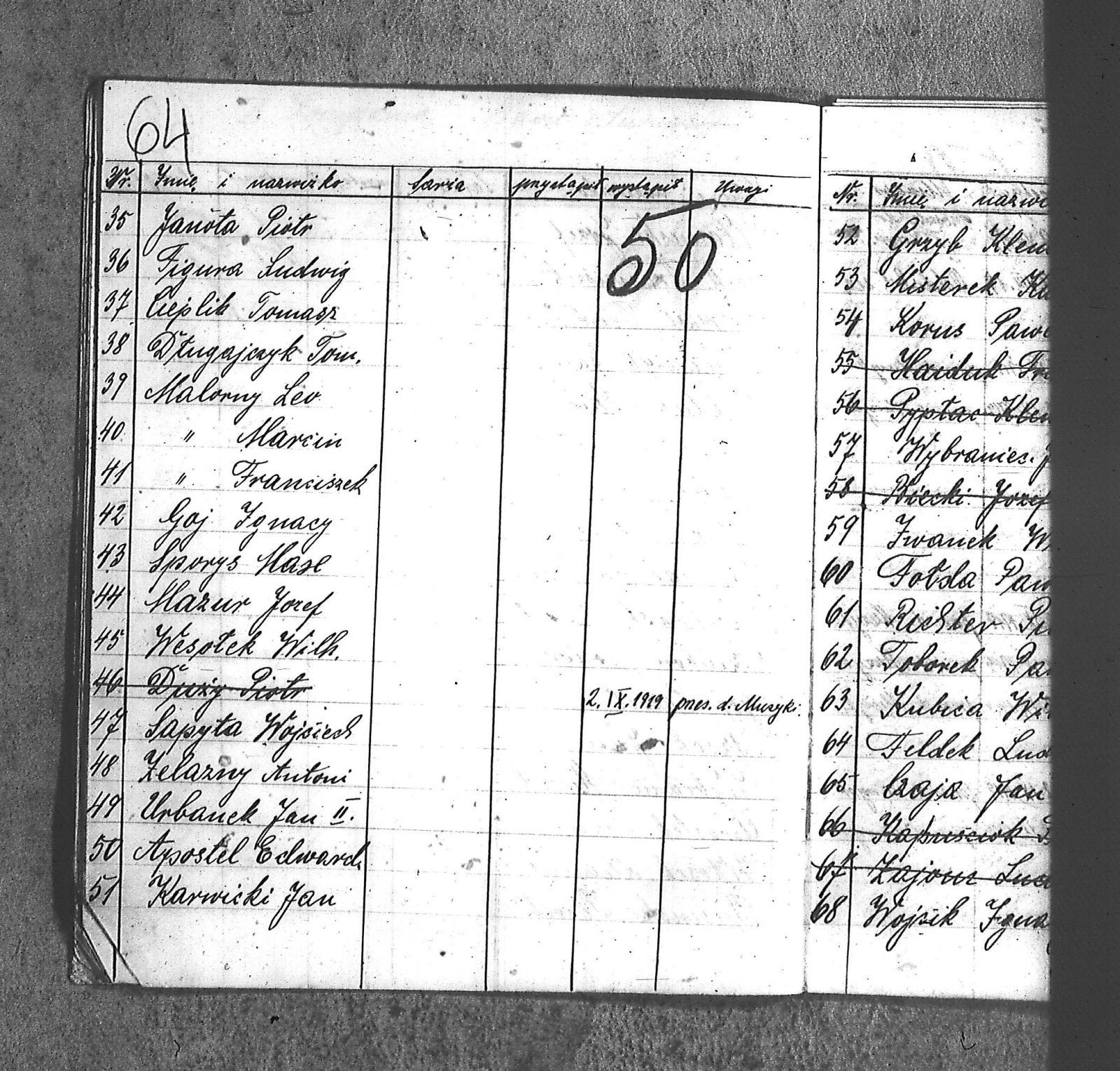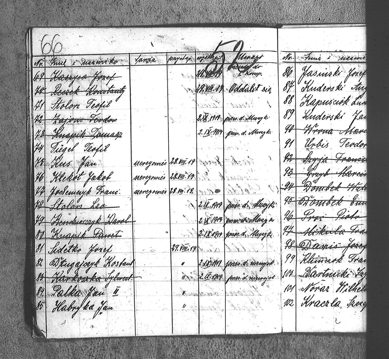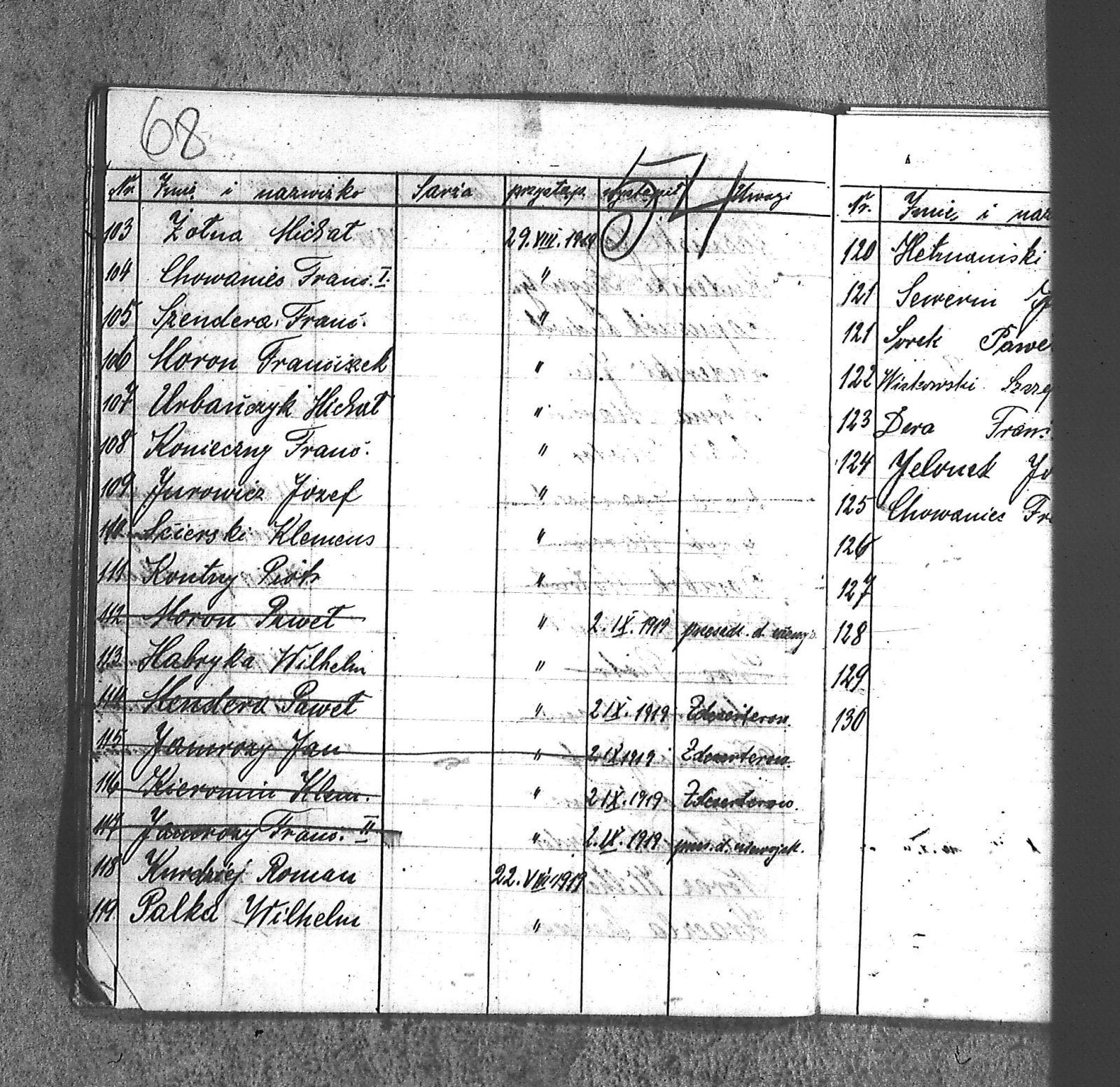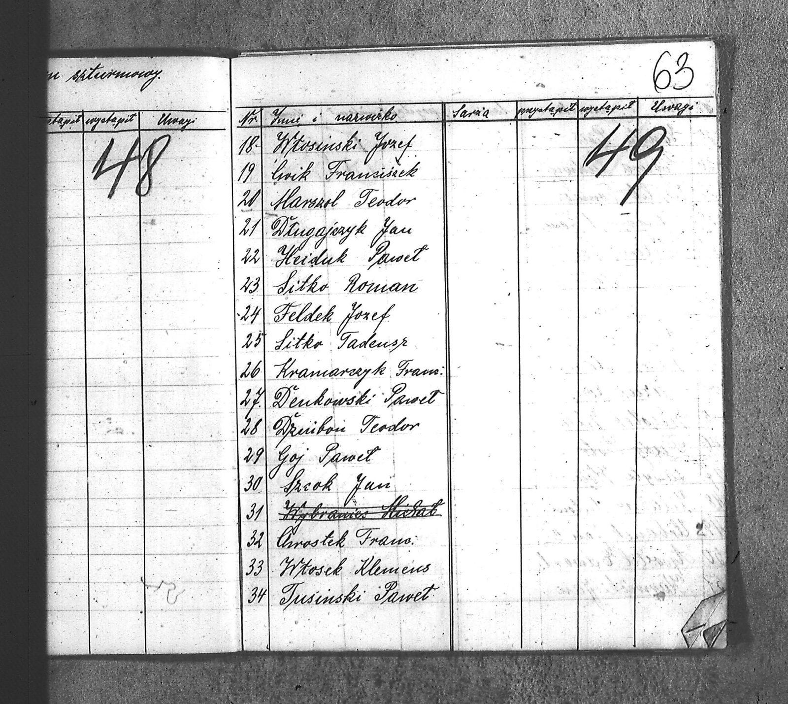 [Danecki], [Franciszek]; [Długajczyk], Wawrzyn; [Dombek], Emil; [Dombek], Walenty; [Dzibany], Paweł; [Dzibon], Teodor; [Ferusol], Jan; [Gainczorz], Józef; [Gincorz], Józef; [Guziak], Władysław; [Habryka], Aug.; [Hachuła], Jan; [Hajduk], Franciszek; [Hiacent], Paweł; [Jaśniski], Jan; [Jaśniski], Józef; [Jochemczyk], [Franciszek]; [Kapuściok], Ludwik; [Kapuśniok], Piotr; [Kaszyca], Józef; [Klimczok], Szczepan; [Klmiern], Walenty; [Kluiczok], Tomasz; [Kontny], Piotr; [Mikula], [Franciszek]; [Ożuchowski]; [Pająk], Józef; [Pająk], Tomasz; [Pioskowik], Piotr; [Rzurziowski], Kazimierz; [Saternus], [Barthom]; [Sewerin], Ludwik; [Sewerm], Jan; [Stachon], Józef; [Szcok], Jan; [Śliwa], Paweł; [Warczek], Piotr; [Winkowski], Szczepan; [Wojcik], Ignacy; [Wybramec], Józef; [Zając], Ludwik; [Zając], Teodor; Apostel, Edward; Apostel, Jan; Apostel, Paweł; Bak, Konstanty; Banasik, Piotr; Bara, Antoni; Bartnicki, Izydor; Bicz, Bolesław; Biecki, Józef; Biecki, Teodor; Bieski, Teodor; Blant, Paweł; Błotko, Jan; Błotko, Ludwik; Boruta, Piotr; Bożek, Jan; Bożek, Karol; Brom, Teodor; Bromborcz, Piotr; Bromboszcz, [Wilhelm]; Brzoska, Leopold; Brzozka, Leopold; Brzozowski, [Franciszek]; Chowaniec, [Franciszek] I; Chowaniec, [Franciszek] II; Chrobok, Jan; Chrostek, [Franciszek]; Cieplik, Tomasz; Cieplok, Augustyn; Cwik, Karol; Czaja, Jan; Czempas, Emil; Ćwik, Franciszek; Danecki, [Franciszek]; Daniś, Józef; Deda, Augustyn; Denczyk, Karol; Deńczyk, Karol; Dera, [Franciszek]; Deukowski, Paweł; Długajczyk, [Tomasz]; Długajczyk, Jan; Długajczyk, Konstanty; Długajczyk, Wal.; Długajczyk, Walenty; Długajczyk, Wawrzyn; Dreinert, Andrzej; Duzy, Jan; Duży, Jan; Duży, Piotr; Feldek, Józef; Feldek, Ludwik; Ferusol, Jacob; Fiegel, Teofil; Figura, Ludwig; Fołda, Paweł; Fołda, Tomasz; Gecman, Szczepan; Głyk, Jan; Głyk, Teodor; Gnyp, Jan; Goj, Antoni; Goj, Ignacy; Goj, Paweł; Goj, Wilhelm; Gornik, Karol; Gruszka, [Alojzy]; Grzega, [Franciszek]; Grzyb, Klemens; Grzyb, Marcin; Grzybek, [Franciszek]; Habryka, Augustyn; Habryka, Jan; Habryka, Wilhelm; Handy, Karol; Haśnik; Heiduk, Paweł; Hetmański, [Tomasz]; Hetmański, [Wojciech]; Hetmański, Jakub; Hetmański, Józef; Hetmański, Piotr; Hetmański, Tomasz; Hetmański, Wojciech; Hornik, Piotr; Howaniec, [Franciszek] I; Ikielek, Ignacy; Iwanek, Wilhelm; Jamrozy, [Franciszek]; Jamrozy, [Franciszek] II; Jamrozy, Antoni; Jamrozy, Jan; Jamrozy, Mikołaj; Jamrozy,[Franciszek]; Jamroży, Jan; Janota, Piotr; January, Antoni; Jaromin, Vincenty; Jaromin, Wincenty; Jasik; Jelonek, Józef; Jenczmyk, Aug.; Jendyczek, Wawrzyn; Jendyk, Melchior; Jeruzol, Jacob; Jeruzol, Jan; Jurowicz, Józef; Kalisz, [Kaźmierz]; Kapuszciok, Wilhelm; Kapuściok, Wilhelm; Karkoszka, Sylwester; Karwicki, Jan; Kaszyca, Józef; Kendzierczyk, Augustyn_II; Kendzierczyk, Paweł; Kendziorczyk, Aug._I; Kendziorczyk, Aug._II; Kendziorczyk, August_II; Kendziorczyk, Jan; Kendziorczyk, Karol; Kendziorczyk, Paweł; Kieromin, Klemens; Klekot, Jakob; Klimczok, Tomasz; Klimczuk, Tomasz; Klinczok, [Franciszek]; Kloska, Wilhelm; Knapik, Jakub; Knapik, Paweł; Knapik, Tomasz; Konieczny, [Franciszek]; Korus, Paweł; Korusiewicz, Julian; Kost, Franciszek; Kost, Stanisław; Kost, Teodor; Kostoł, Teodor; Koszyca, Józef; Kozioł, Jan; Kraczla, Szczepan; Kramarczyk, [Franciszek]; Krenzel, Antoni; Książkiewicz, Tadeusz; Kubica, Wiktor; Kuderski, Augustyn; Kuderski, Jan; Kurdziej, Klemens; Kurdziej, Roman; Kurdziej, Wilhelm; Kuś, Jan; Lachowicz, Henryk; Lukaszewski, Kaz.; Łokietek, Władysław; Magdziorz, Szczepan; Malorny, Franciszek; Malorny, Lev; Malorny, Marcin; Marszol, Teodor; Maslorz, Antoni; Mastorz, Antoni; Mazur, Jan; Mazur, Józef; Mazur, Paweł; Mazur, Szczepan; Mendera, Paweł; Michalik, Paweł; Misterek, Karol; Mokry, Konrad; Moron, Franciszek; Moron, Paweł; Musioł, R.; Myrda, [Franciszek]; Myrda, Aug.; Myrda, Augustyn; Myrda, Paweł; Niemiec, Michał; Noras, Wilhelm; Noraz, Wilhelm; Nowakowski, Jan; Olej, Piotr; Osoba, Augustyn; Osoba, Paweł I; Osoba, Paweł II; Ostrowski, Jan; Pajonk, Tomasz; Palka, Jan; Palka, Jan I; Palka, Jan II; Palka, Klemens; Palka, Wilhelm; Paternus, Tomasz; Penczek, Teodor; Peszke, Jan; Pienta, Piotr; Pięta, Piotr; Pilarek, Paweł; Pioskowik, Piotr; Plewniok, Szczepan; Pmok, Wawrzyn; Pniok, Antoni; Pniok, Wawrzyn; Polok, Augustyn; Porwit, [Franciszek]; Porwoł, Jan; Potrzeba, Wawrzyn; Proc, Piotr; Pryszcz, Franciszek; Pypłac, Piotr; Pypłać, Klemens; Radziewicz, Bolesław; Rak, Karol; Reczek, Konstanty; Richter, Piotr; Roik, Augustyn; Sapyta, Wojciech; Saternus, Bart.; Saternus, Tomasz; Schmidt, Paweł; Schmidt, Szczepan; Schmidt, Walenty; Schmiedt, Paweł; Schmiedt, Szczepan; Sewerin, Antoni; Sewerin, Jan; Sidełko, Józef; Sitko, Roman; Sitko, Stanisław; Sitko, Tadeusz; Sitko, Walenty; Sliwa, Paweł; Smutny, Viktor; Smutny, Wiktor; Snopek, Marian; Sojka, [Franciszek]; Sojka, Antoni; Sorek, Józef; Sorek, Ludwik; Sorek, Paweł; Sporys, [Max]; Stachon, Józef; Stachoń, Józef; Stanoszek, Ludwig; Stanoszek, Ludwik; Stokłosa, Jan; Stollorz, Jan; Stollorz, Tomasz; Stolorz, Antoni; Stolorz, Leo; Stolorz, Lev; Stolorz, Teofil; Swiaczny, Jan; Szemanek, Piotr; Szendera, [Franciszek]; Szmiedt, Walenty; Szyja, Franciszek; Szymanek, Piotr; Ścierski, Klemens; Toborek, Antoni; Toborek, Paweł; Tomanek, [Hah]; Tomanek, [Max.]; Tomiczek; Tomiczek, Augustyn; Tusiński, Paweł; Urbanek, Jan; Urbanek, Jan_II; Urbańczyk, Michał; Urbis, Teodor; Warczek, Piotr; Wesołek, Wilhelm; Wilczek, Jan; Wilczek, Paweł; Wilczek, Wilhelm; Winiarski, Antoni; Włosek, Klemens; Wójcik, Jan; Wrona, Marcin; Wtosiński, Józef; Wybramis, Józef; Wybraniec, [Jackob]; Wybraniec, Jakob; Wybraniec, Jan; Wybraniec, Józef; Wybraniec, Michał; Wyrda, Paweł; Wywioł, [Franciszek]; Wywiot, Franciszek; Zając, Szczepan; Zawadzki; Zawadzki, [Franciszek]; Ziemba, Szczepan; Zyskowicz, Bolesław; Żelazny, [Wilhelm]; Żelazny, Antoni; Żelazny, Wilhelm; Żołna, Michał; Żołn