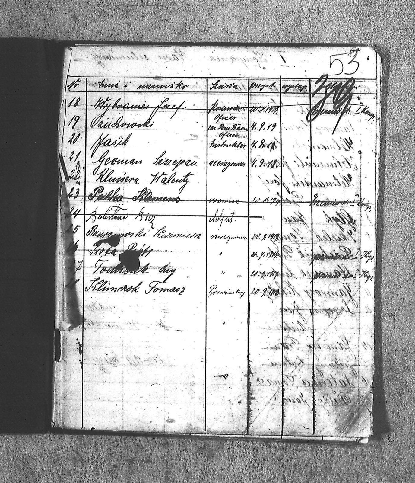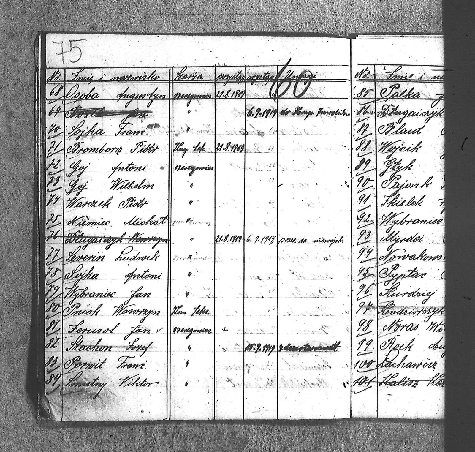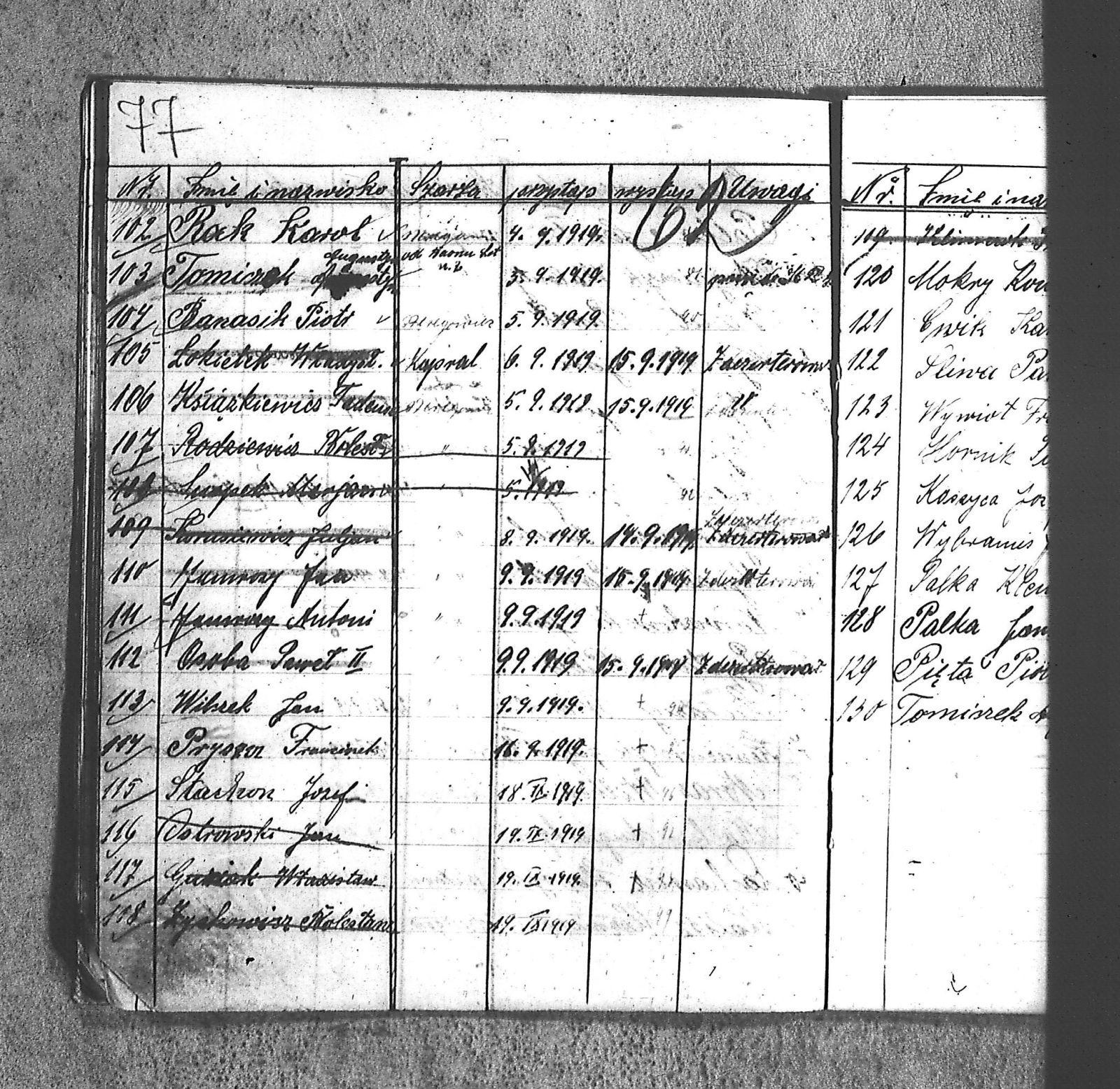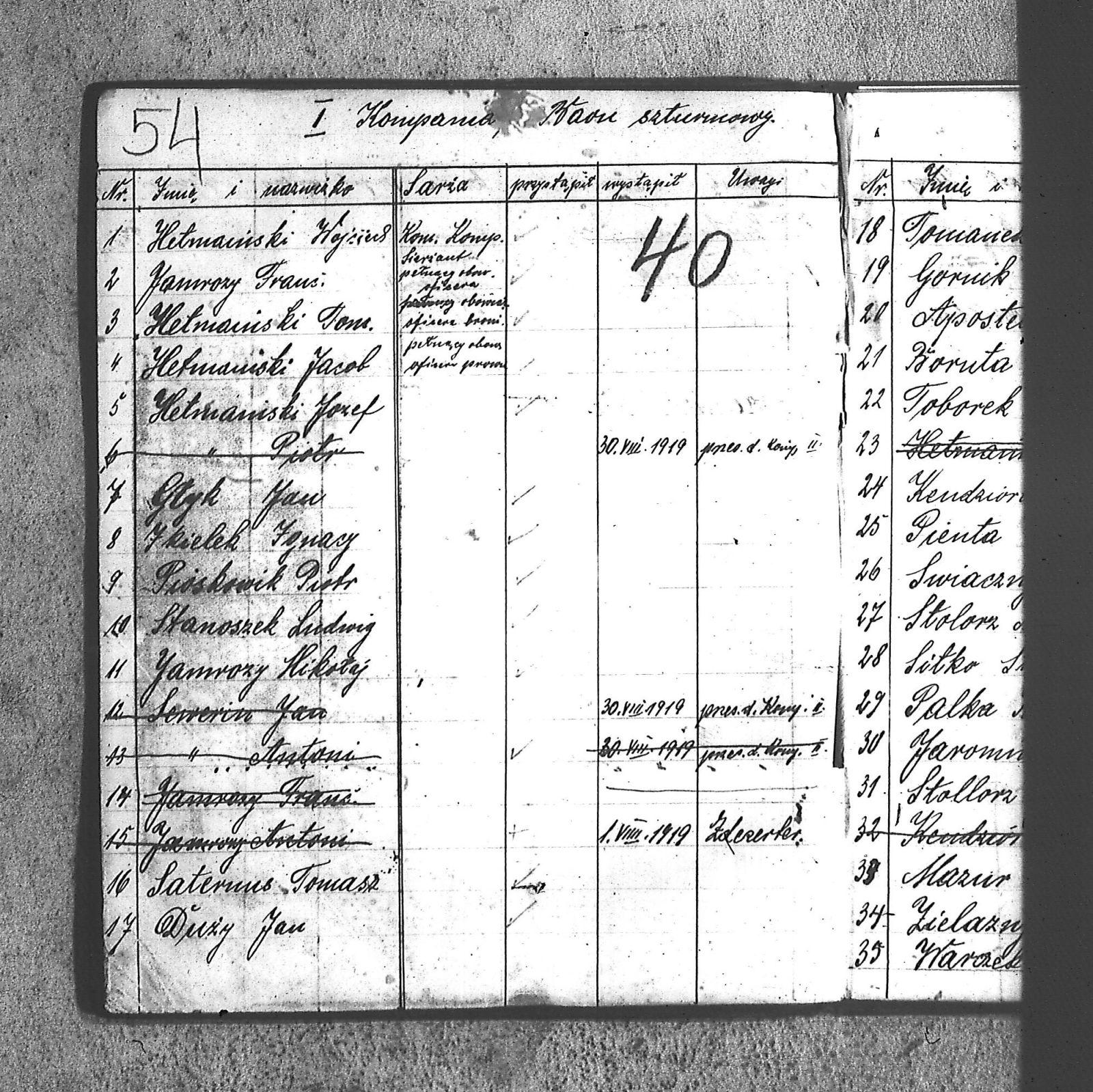 [Danecki], [Franciszek]; [Długajczyk], Wawrzyn; [Dombek], Emil; [Dombek], Walenty; [Dzibany], Paweł; [Dzibon], Teodor; [Ferusol], Jan; [Gainczorz], Józef; [Gincorz], Józef; [Guziak], Władysław; [Habryka], Aug.; [Hachuła], Jan; [Hajduk], Franciszek; [Hiacent], Paweł; [Jaśniski], Jan; [Jaśniski], Józef; [Jochemczyk], [Franciszek]; [Kapuściok], Ludwik; [Kapuśniok], Piotr; [Kaszyca], Józef; [Klimczok], Szczepan; [Klmiern], Walenty; [Kluiczok], Tomasz; [Kontny], Piotr; [Mikula], [Franciszek]; [Ożuchowski]; [Pająk], Józef; [Pająk], Tomasz; [Pioskowik], Piotr; [Rzurziowski], Kazimierz; [Saternus], [Barthom]; [Sewerin], Ludwik; [Sewerm], Jan; [Stachon], Józef; [Szcok], Jan; [Śliwa], Paweł; [Warczek], Piotr; [Winkowski], Szczepan; [Wojcik], Ignacy; [Wybramec], Józef; [Zając], Ludwik; [Zając], Teodor; Apostel, Edward; Apostel, Jan; Apostel, Paweł; Bak, Konstanty; Banasik, Piotr; Bara, Antoni; Bartnicki, Izydor; Bicz, Bolesław; Biecki, Józef; Biecki, Teodor; Bieski, Teodor; Blant, Paweł; Błotko, Jan; Błotko, Ludwik; Boruta, Piotr; Bożek, Jan; Bożek, Karol; Brom, Teodor; Bromborcz, Piotr; Bromboszcz, [Wilhelm]; Brzoska, Leopold; Brzozka, Leopold; Brzozowski, [Franciszek]; Chowaniec, [Franciszek] I; Chowaniec, [Franciszek] II; Chrobok, Jan; Chrostek, [Franciszek]; Cieplik, Tomasz; Cieplok, Augustyn; Cwik, Karol; Czaja, Jan; Czempas, Emil; Ćwik, Franciszek; Danecki, [Franciszek]; Daniś, Józef; Deda, Augustyn; Denczyk, Karol; Deńczyk, Karol; Dera, [Franciszek]; Deukowski, Paweł; Długajczyk, [Tomasz]; Długajczyk, Jan; Długajczyk, Konstanty; Długajczyk, Wal.; Długajczyk, Walenty; Długajczyk, Wawrzyn; Dreinert, Andrzej; Duzy, Jan; Duży, Jan; Duży, Piotr; Feldek, Józef; Feldek, Ludwik; Ferusol, Jacob; Fiegel, Teofil; Figura, Ludwig; Fołda, Paweł; Fołda, Tomasz; Gecman, Szczepan; Głyk, Jan; Głyk, Teodor; Gnyp, Jan; Goj, Antoni; Goj, Ignacy; Goj, Paweł; Goj, Wilhelm; Gornik, Karol; Gruszka, [Alojzy]; Grzega, [Franciszek]; Grzyb, Klemens; Grzyb, Marcin; Grzybek, [Franciszek]; Habryka, Augustyn; Habryka, Jan; Habryka, Wilhelm; Handy, Karol; Haśnik; Heiduk, Paweł; Hetmański, [Tomasz]; Hetmański, [Wojciech]; Hetmański, Jakub; Hetmański, Józef; Hetmański, Piotr; Hetmański, Tomasz; Hetmański, Wojciech; Hornik, Piotr; Howaniec, [Franciszek] I; Ikielek, Ignacy; Iwanek, Wilhelm; Jamrozy, [Franciszek]; Jamrozy, [Franciszek] II; Jamrozy, Antoni; Jamrozy, Jan; Jamrozy, Mikołaj; Jamrozy,[Franciszek]; Jamroży, Jan; Janota, Piotr; January, Antoni; Jaromin, Vincenty; Jaromin, Wincenty; Jasik; Jelonek, Józef; Jenczmyk, Aug.; Jendyczek, Wawrzyn; Jendyk, Melchior; Jeruzol, Jacob; Jeruzol, Jan; Jurowicz, Józef; Kalisz, [Kaźmierz]; Kapuszciok, Wilhelm; Kapuściok, Wilhelm; Karkoszka, Sylwester; Karwicki, Jan; Kaszyca, Józef; Kendzierczyk, Augustyn_II; Kendzierczyk, Paweł; Kendziorczyk, Aug._I; Kendziorczyk, Aug._II; Kendziorczyk, August_II; Kendziorczyk, Jan; Kendziorczyk, Karol; Kendziorczyk, Paweł; Kieromin, Klemens; Klekot, Jakob; Klimczok, Tomasz; Klimczuk, Tomasz; Klinczok, [Franciszek]; Kloska, Wilhelm; Knapik, Jakub; Knapik, Paweł; Knapik, Tomasz; Konieczny, [Franciszek]; Korus, Paweł; Korusiewicz, Julian; Kost, Franciszek; Kost, Stanisław; Kost, Teodor; Kostoł, Teodor; Koszyca, Józef; Kozioł, Jan; Kraczla, Szczepan; Kramarczyk, [Franciszek]; Krenzel, Antoni; Książkiewicz, Tadeusz; Kubica, Wiktor; Kuderski, Augustyn; Kuderski, Jan; Kurdziej, Klemens; Kurdziej, Roman; Kurdziej, Wilhelm; Kuś, Jan; Lachowicz, Henryk; Lukaszewski, Kaz.; Łokietek, Władysław; Magdziorz, Szczepan; Malorny, Franciszek; Malorny, Lev; Malorny, Marcin; Marszol, Teodor; Maslorz, Antoni; Mastorz, Antoni; Mazur, Jan; Mazur, Józef; Mazur, Paweł; Mazur, Szczepan; Mendera, Paweł; Michalik, Paweł; Misterek, Karol; Mokry, Konrad; Moron, Franciszek; Moron, Paweł; Musioł, R.; Myrda, [Franciszek]; Myrda, Aug.; Myrda, Augustyn; Myrda, Paweł; Niemiec, Michał; Noras, Wilhelm; Noraz, Wilhelm; Nowakowski, Jan; Olej, Piotr; Osoba, Augustyn; Osoba, Paweł I; Osoba, Paweł II; Ostrowski, Jan; Pajonk, Tomasz; Palka, Jan; Palka, Jan I; Palka, Jan II; Palka, Klemens; Palka, Wilhelm; Paternus, Tomasz; Penczek, Teodor; Peszke, Jan; Pienta, Piotr; Pięta, Piotr; Pilarek, Paweł; Pioskowik, Piotr; Plewniok, Szczepan; Pmok, Wawrzyn; Pniok, Antoni; Pniok, Wawrzyn; Polok, Augustyn; Porwit, [Franciszek]; Porwoł, Jan; Potrzeba, Wawrzyn; Proc, Piotr; Pryszcz, Franciszek; Pypłac, Piotr; Pypłać, Klemens; Radziewicz, Bolesław; Rak, Karol; Reczek, Konstanty; Richter, Piotr; Roik, Augustyn; Sapyta, Wojciech; Saternus, Bart.; Saternus, Tomasz; Schmidt, Paweł; Schmidt, Szczepan; Schmidt, Walenty; Schmiedt, Paweł; Schmiedt, Szczepan; Sewerin, Antoni; Sewerin, Jan; Sidełko, Józef; Sitko, Roman; Sitko, Stanisław; Sitko, Tadeusz; Sitko, Walenty; Sliwa, Paweł; Smutny, Viktor; Smutny, Wiktor; Snopek, Marian; Sojka, [Franciszek]; Sojka, Antoni; Sorek, Józef; Sorek, Ludwik; Sorek, Paweł; Sporys, [Max]; Stachon, Józef; Stachoń, Józef; Stanoszek, Ludwig; Stanoszek, Ludwik; Stokłosa, Jan; Stollorz, Jan; Stollorz, Tomasz; Stolorz, Antoni; Stolorz, Leo; Stolorz, Lev; Stolorz, Teofil; Swiaczny, Jan; Szemanek, Piotr; Szendera, [Franciszek]; Szmiedt, Walenty; Szyja, Franciszek; Szymanek, Piotr; Ścierski, Klemens; Toborek, Antoni; Toborek, Paweł; Tomanek, [Hah]; Tomanek, [Max.]; Tomiczek; Tomiczek, Augustyn; Tusiński, Paweł; Urbanek, Jan; Urbanek, Jan_II; Urbańczyk, Michał; Urbis, Teodor; Warczek, Piotr; Wesołek, Wilhelm; Wilczek, Jan; Wilczek, Paweł; Wilczek, Wilhelm; Winiarski, Antoni; Włosek, Klemens; Wójcik, Jan; Wrona, Marcin; Wtosiński, Józef; Wybramis, Józef; Wybraniec, [Jackob]; Wybraniec, Jakob; Wybraniec, Jan; Wybraniec, Józef; Wybraniec, Michał; Wyrda, Paweł; Wywioł, [Franciszek]; Wywiot, Franciszek; Zając, Szczepan; Zawadzki; Zawadzki, [Franciszek]; Ziemba, Szczepan; Zyskowicz, Bolesław; Żelazny, [Wilhelm]; Żelazny, Antoni; Żelazny, Wilhelm; Żołna, Michał; Żołn