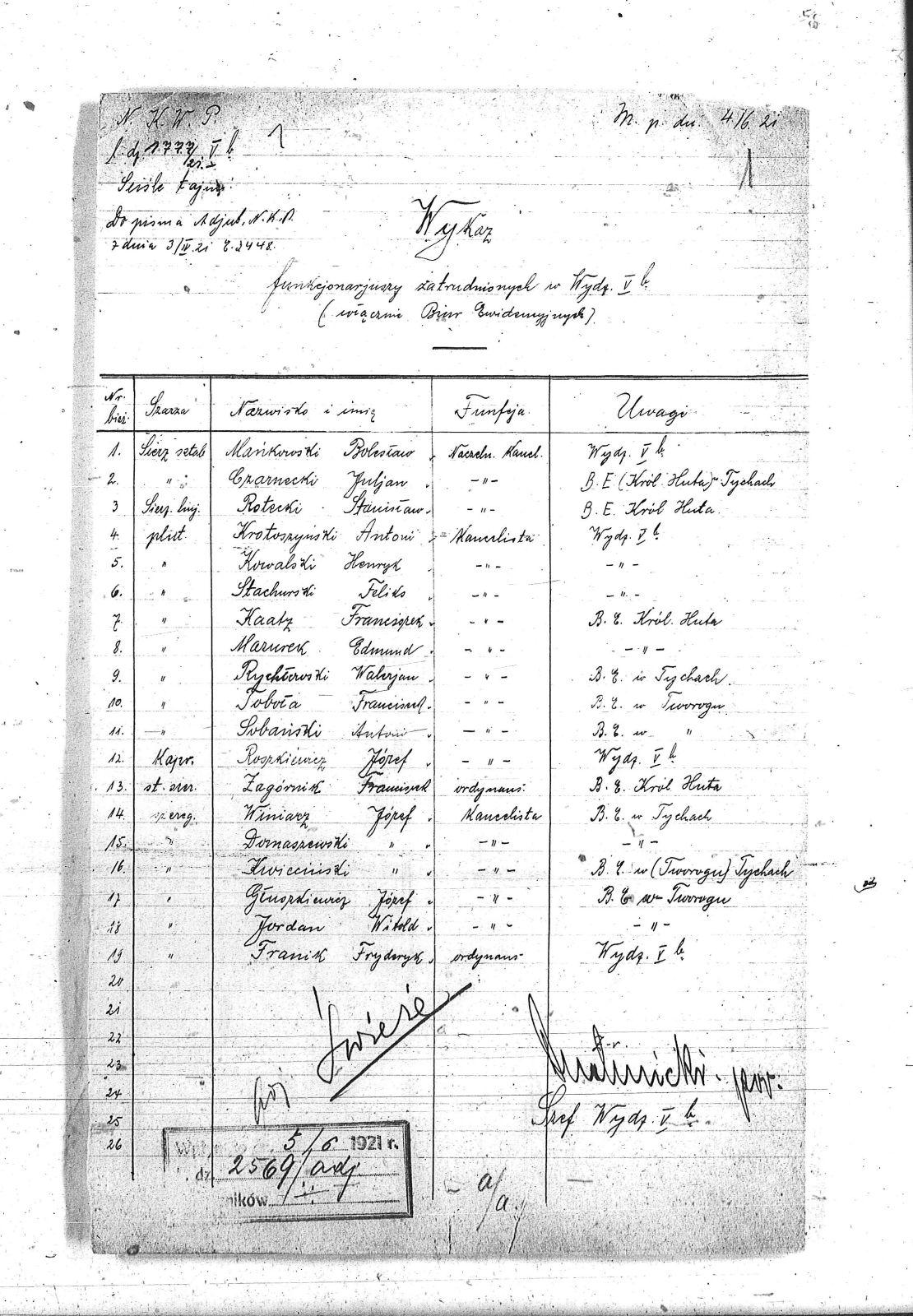 | Tytuł | Wykaz funkcjonariuszy zatrudnionych w Wydziale V b. |