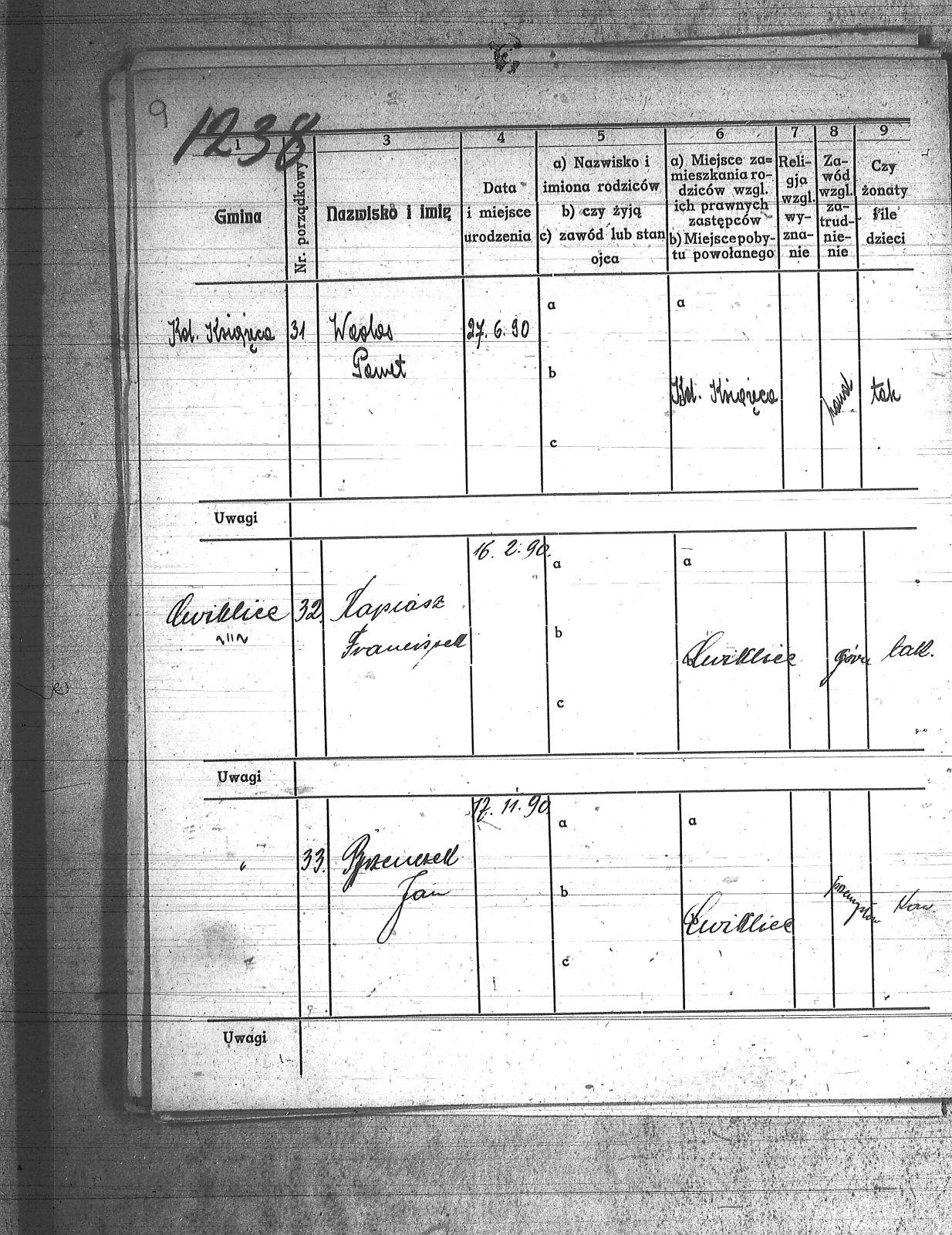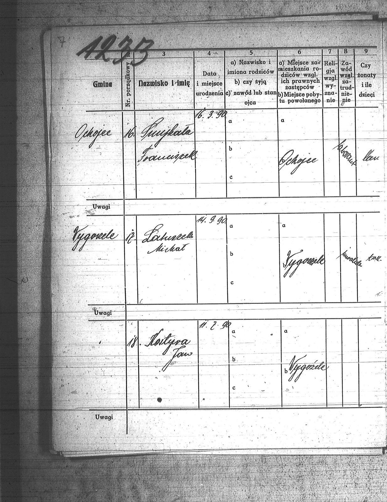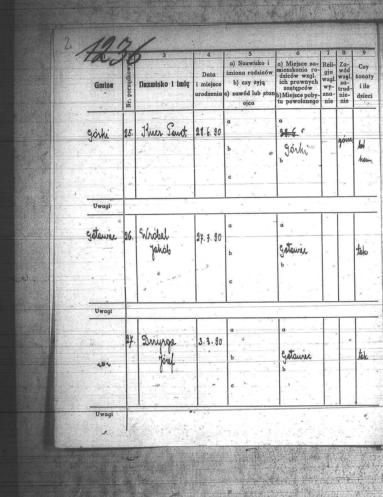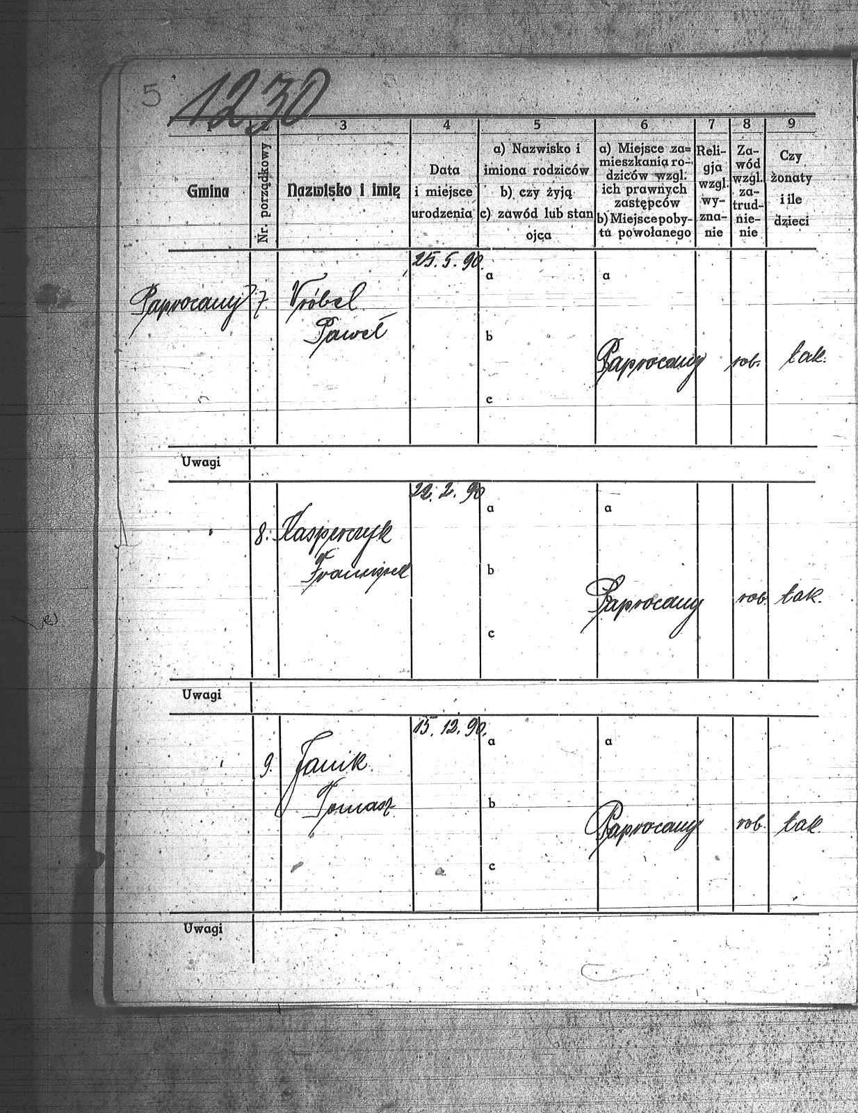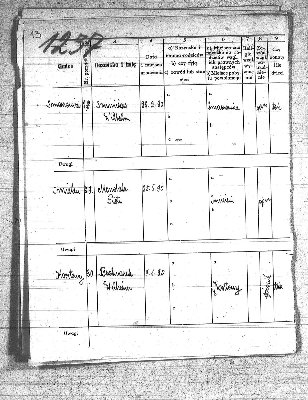 Adamski, Tomasz; Bednarek, Wilhelm; Borkowy, Stanisław; Brzenczek, Jan; Brzozok;[Brzozoh], Antoni; Czempas, Teodor; Drzyzga, Józef; Gandzik, Paweł; Gołaszczyk, Stanisław; Gruszka, Jan; Janik, Tomasz; Kapiasz, Franciszek; Kasperczyk, Franciszek; Kędzior, Ludwik; Kłos, Wawrzyno; Kokot, Augustyn; Kostyra, Jan; Kucz, Paweł; Labuś, Augustyn; Latuszek, Michał; Łoskot, Domin; Łuskowski;[Łenczkowski], Jan; Małek, Franciszek; Matuszczyk, Józef; Mondela, Piotr; Muras, Tomasz; Musioł, Paweł; Polarczyk, Józef; Sawera, Karol; Skrabaka, Paweł; Smykała, Franciszek; Szczerwik, Paweł; Szkołda, Aleks; Szumilas, Wilhelm; Wadas, Paweł; Wróbel, Jakób; Wróbel, Paweł; |