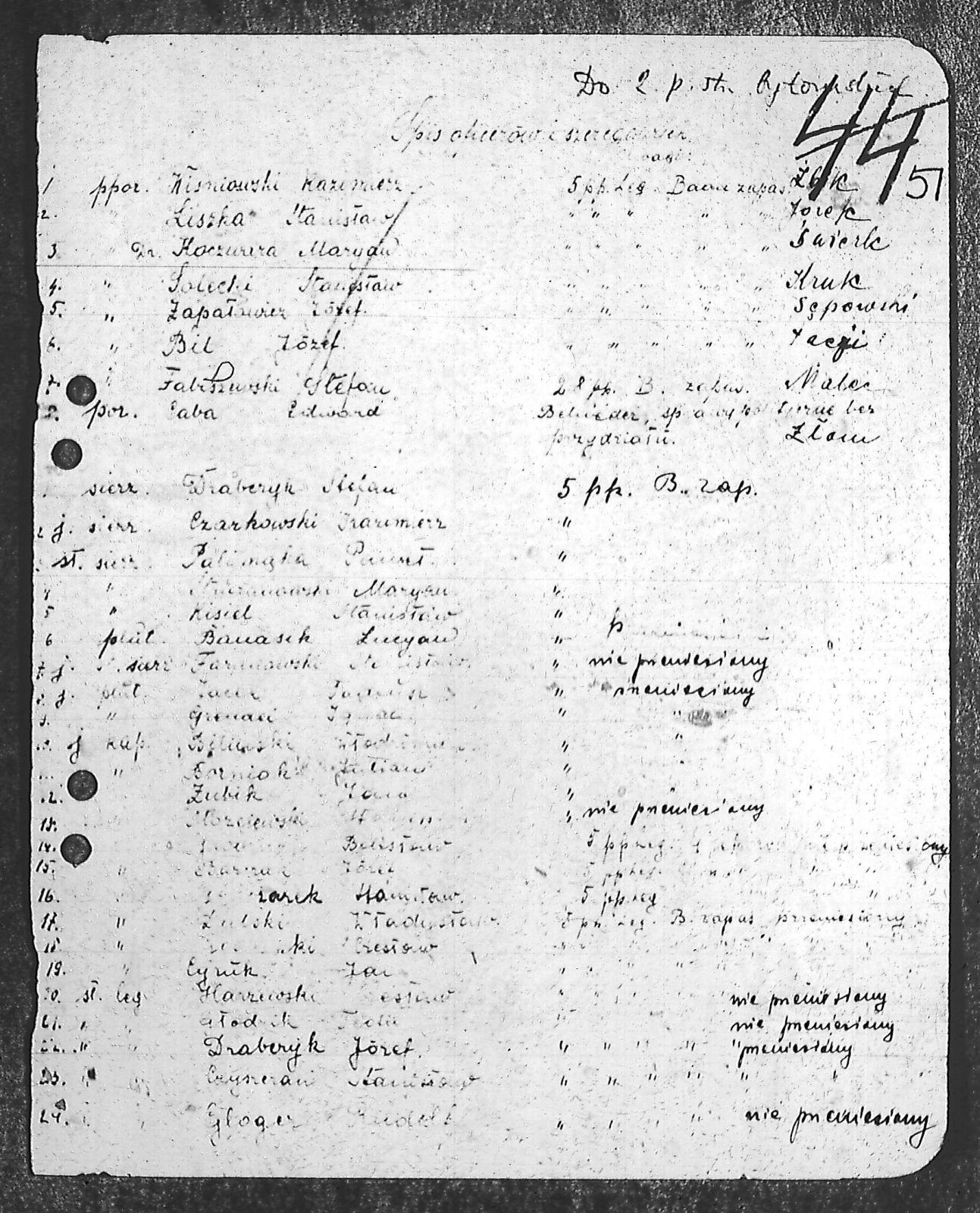Banasik, Lucjan; Barczak, Józef; Bil, Józef; Biliński, Włodzimierz; Biłońs, Józef; Borniak, Julian; Bujno-Czekalski, Władysław; Caba, Edward; Ciciński, Marian; Cyruk, Jan; Czarkowski, Kazimierz; Czyszczan, Stanisław; Drabczyk, Józef; Drabczyk, Stefan; Dubik, Kazimierz; Dulski, Władysław; Fabiszewski, Stefan; Faranowski, Stanisław; Fylyk, Gustaw; Gloger, Rudolf; Głodzik, Teofil; Godlewski, Czesław; Golinski, Wojciech; Gonczarek, Stanisław; Grendel, Ignacy; Grodzicki, Bolesław; Harzewski, Czesław; Hermanowski, Kazimierz; Jacek, Tadeusz; Kisiel, Stanisław; Kocioł, Jan; Koczwara, Marian; Kwiatkowski, Jan; Liszka, Stanisław; Majewicz, Józef; Mozelewski, Stanisław; Newela, Feliks; Palimąka, Paweł; Rozsypał, Franciszek; Skołarski, Maciej; Słoń, Aleksander; Solecki, Antoni; Solecki, Stanisław; Stróżanowski, Marian; Wiśniowski, Kazimierz; Zapałowicz, Józef; Żubik, Jan; |
